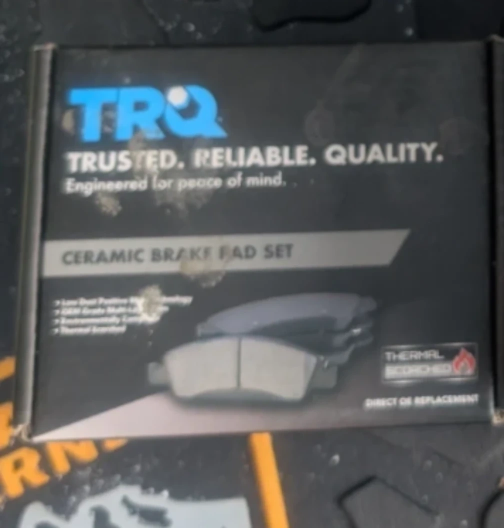 TRQ ceramic brake pad set. Low dust positive molding technology. Includes OEM grade multi-layer shim. Environmentally compliant. Thermal scorched surface.