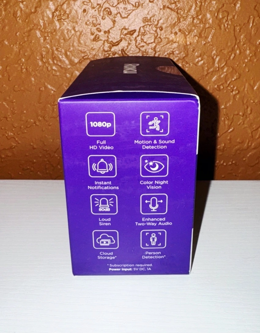 It's easy to monitor your home from anywhere with the Roku Smart Home mobile app! It features 1080p Full HD Video, Motion & Sound Detection, Instant Notifications, Color Night Vision, Loud Siren, Enhanced Two-Way Audio, Cloud Storage, and Person Detection.
