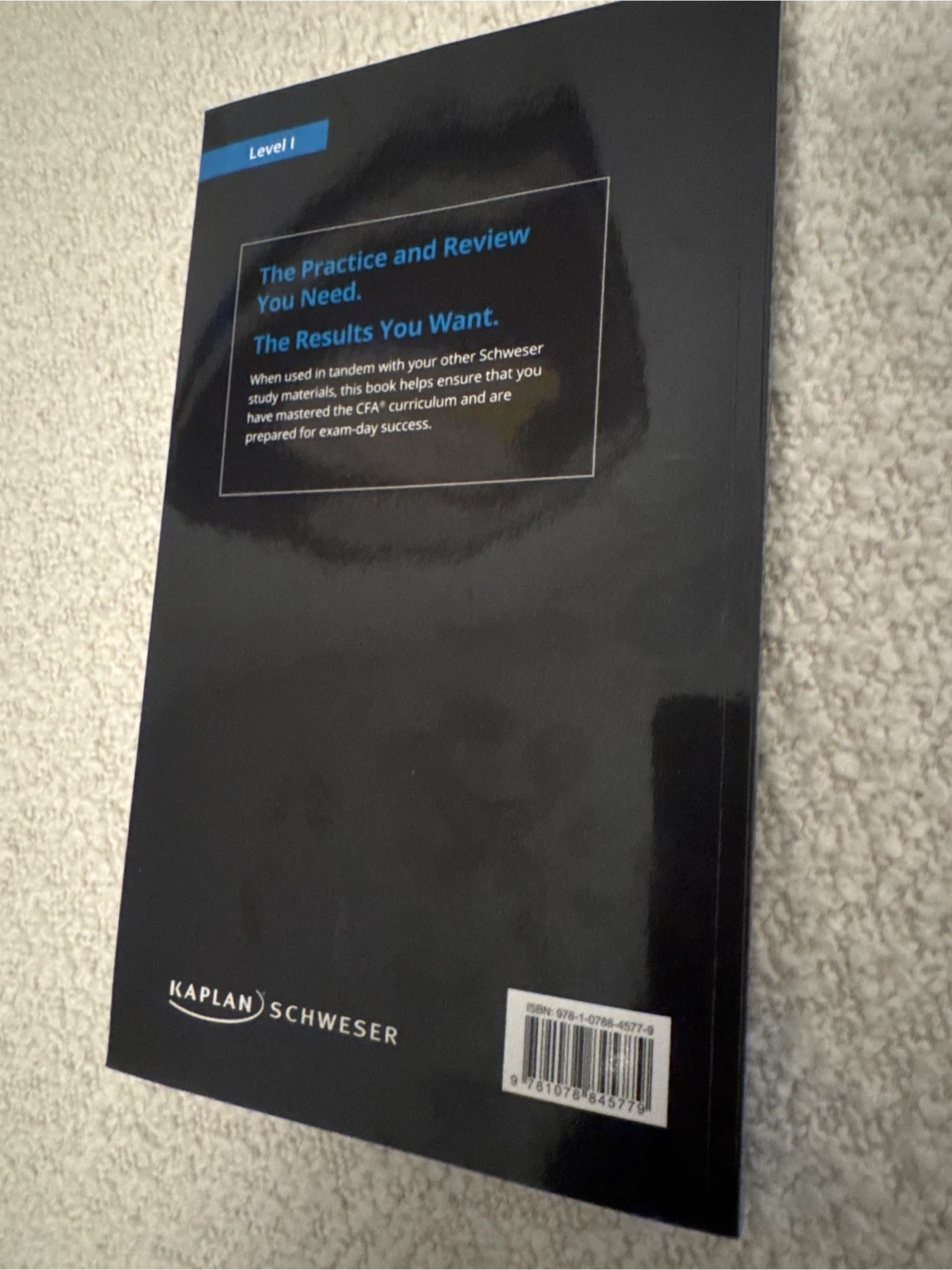 Selling Kaplan Schweser's Secret Sauce for the 2025 CFA Level I exam prep. This book is designed to be used in tandem with other Schweser study materials to help ensure that you have mastered the CFA curriculum and are prepared for exam-day success. Book retails for $150 on the Kaplan website.