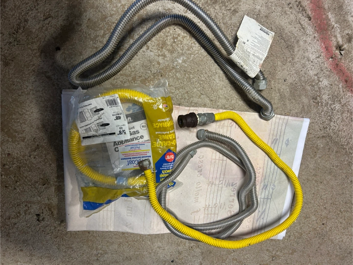 Kit includes a 48" ProCoat 5/8" OD gas connector hose and additional flexible gas lines. Features advanced corrosion resistance. Suitable for gas ranges and appliances.