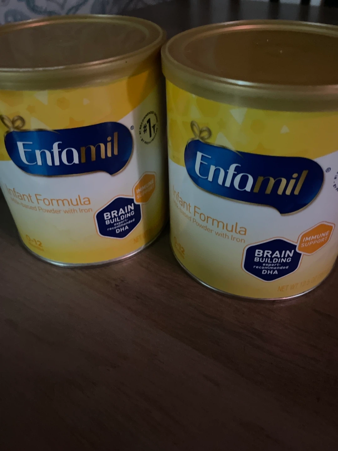Two cans of Enfamil Infant Formula, milk-based powder with iron. Includes DHA for brain building and immune support. Net weight 12.5 oz each.