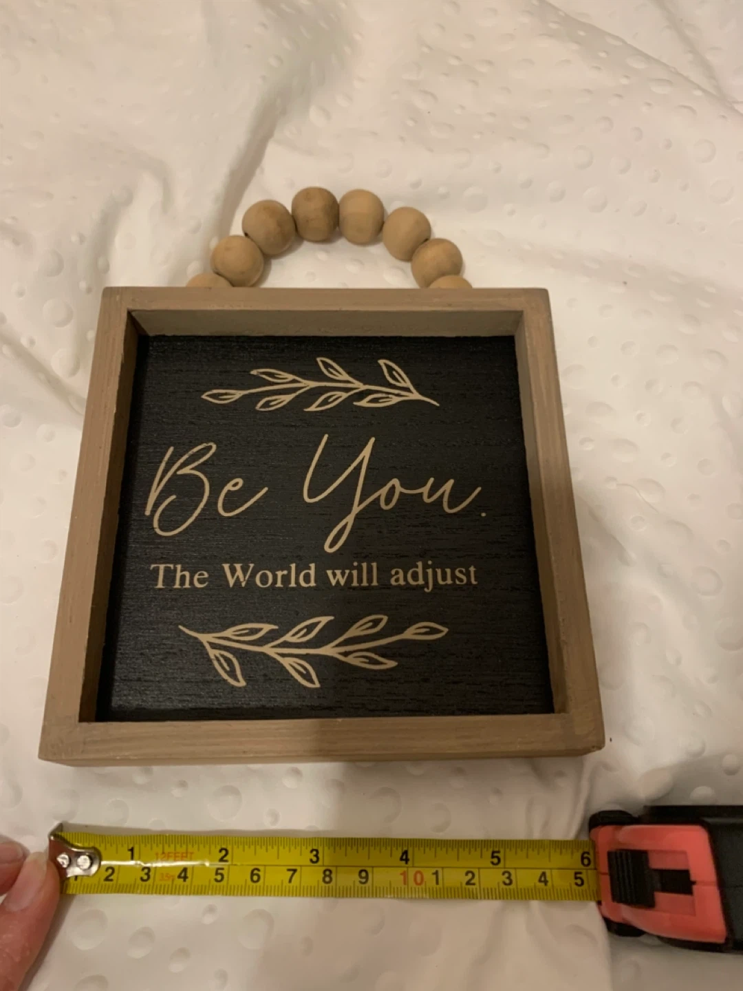 68I'm selling a cute wooden sign that says 'Be You. The World will adjust'. It's from Young's Inc and has a beaded handle. It measures about 6 inches. Originally bought for $11.95
