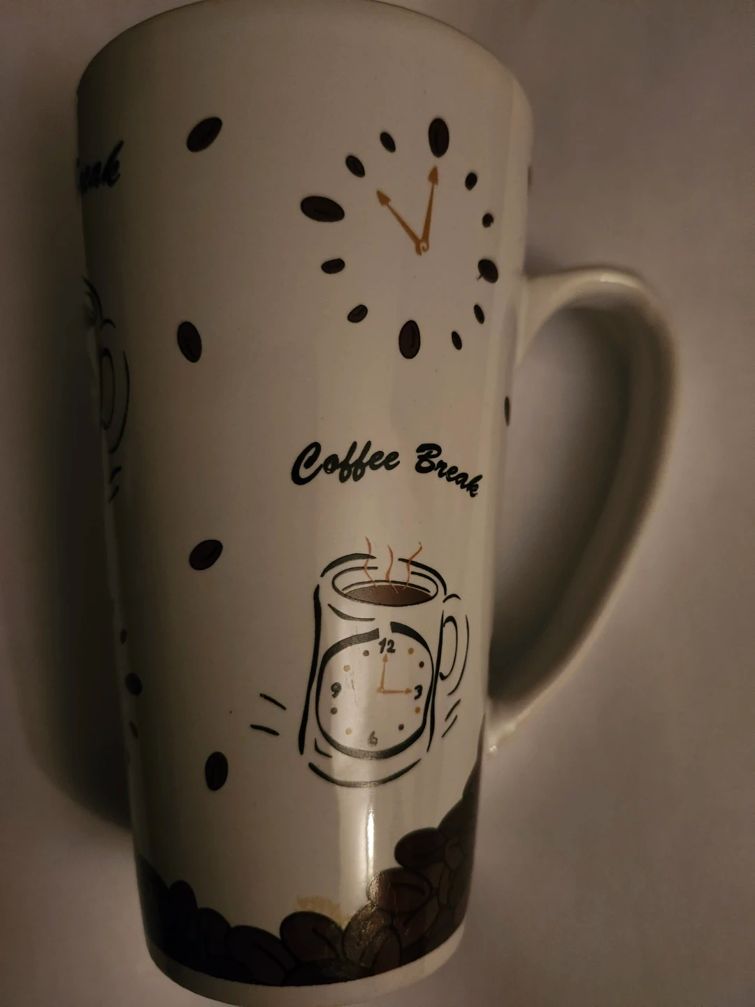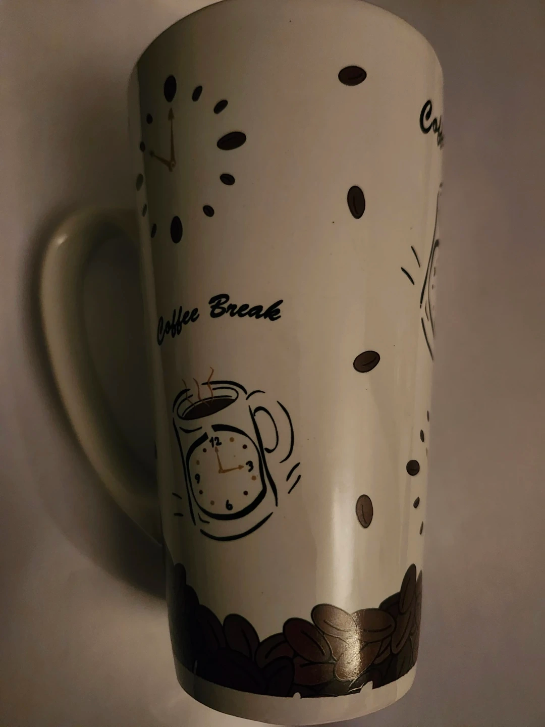 TALL COFFEE MUG, MICROWAVE AND DISHWASHER SAFE. 6" height. Use for coffee, tea, etc. See ALL photos. NO half or lowball offers.