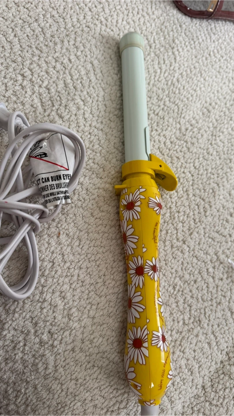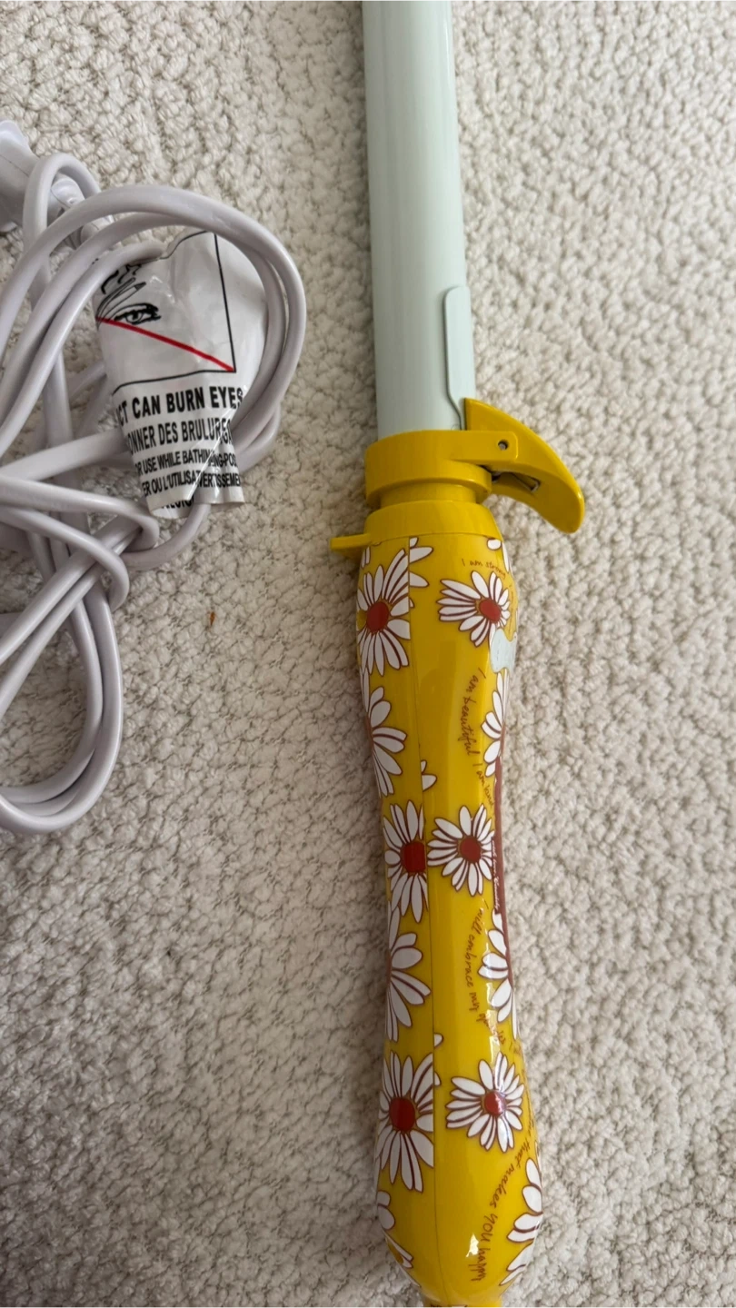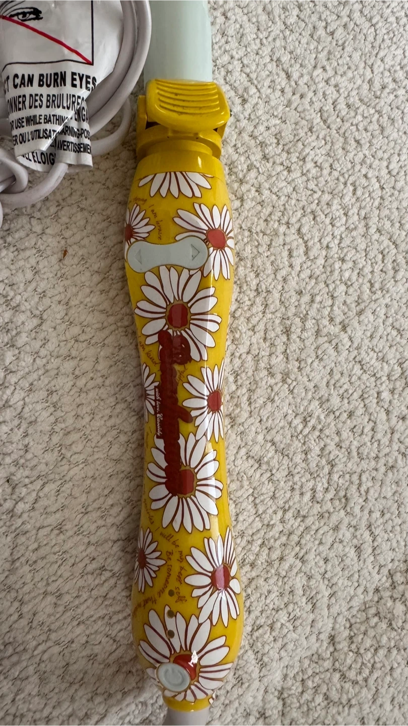 10Beach waver rotating Curling Iron - 1 inch in great condition! It features a cute yellow floral design. Perfect for creating beautiful curls!