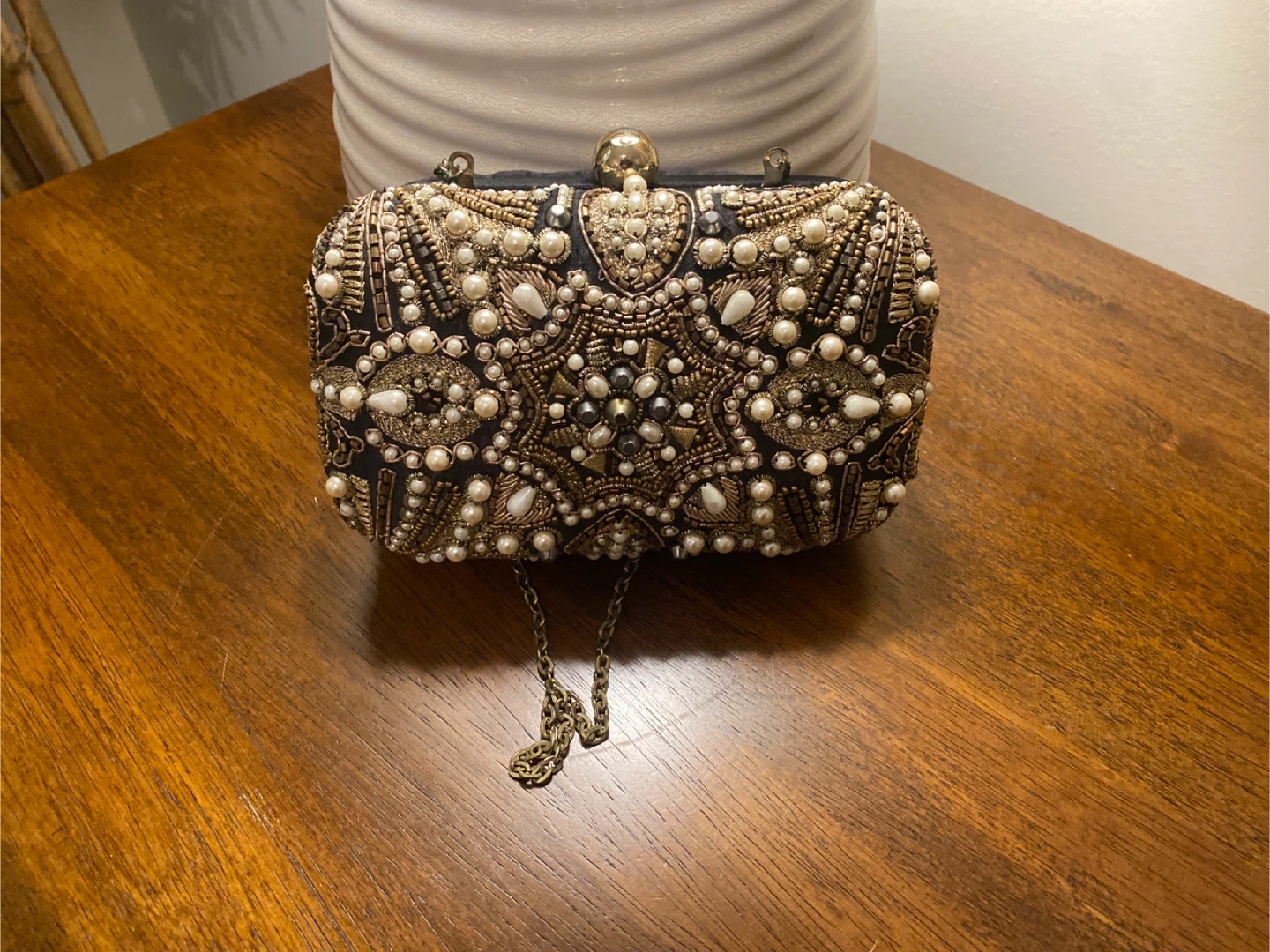 59Beautiful beaded evening clutch with a chain strap. Perfect for a night out or special occasion! It's in great condition. Bought for a particular event but didn’t use it