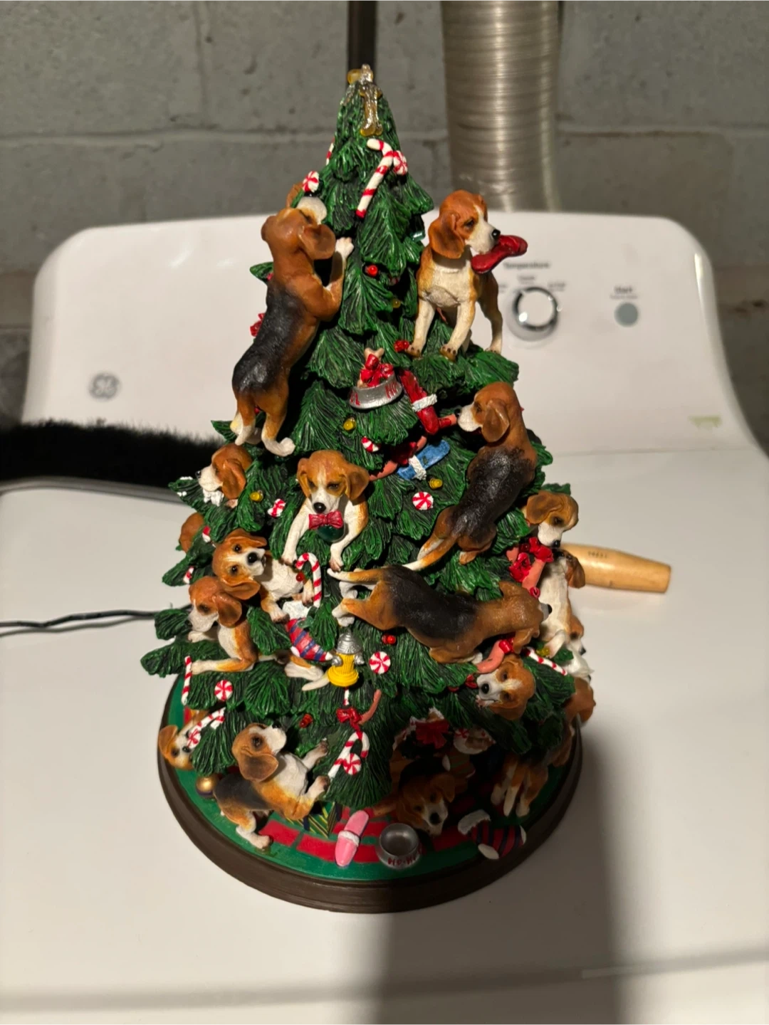 10This is a Christmas tree figurine with beagles climbing all over it! It's a unique and festive piece that would look great in any home