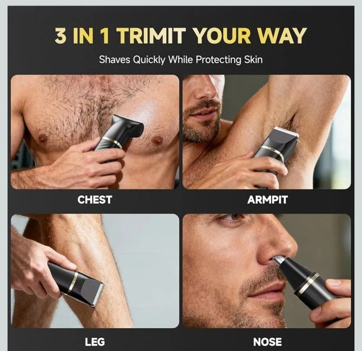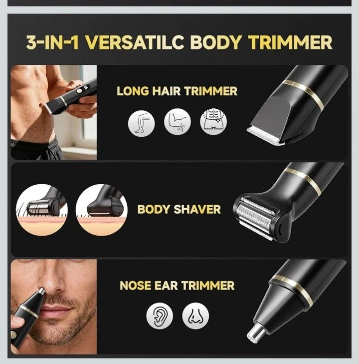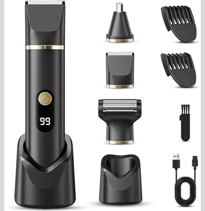 Beard Trimmer for Men, IPX7 Waterproof Body Hair Trimmer Electric Razor Shaver Body Grooming Kit Wet/Dry Use for Groin, Nose, Ear Hairs, Beard, Legs, Chest