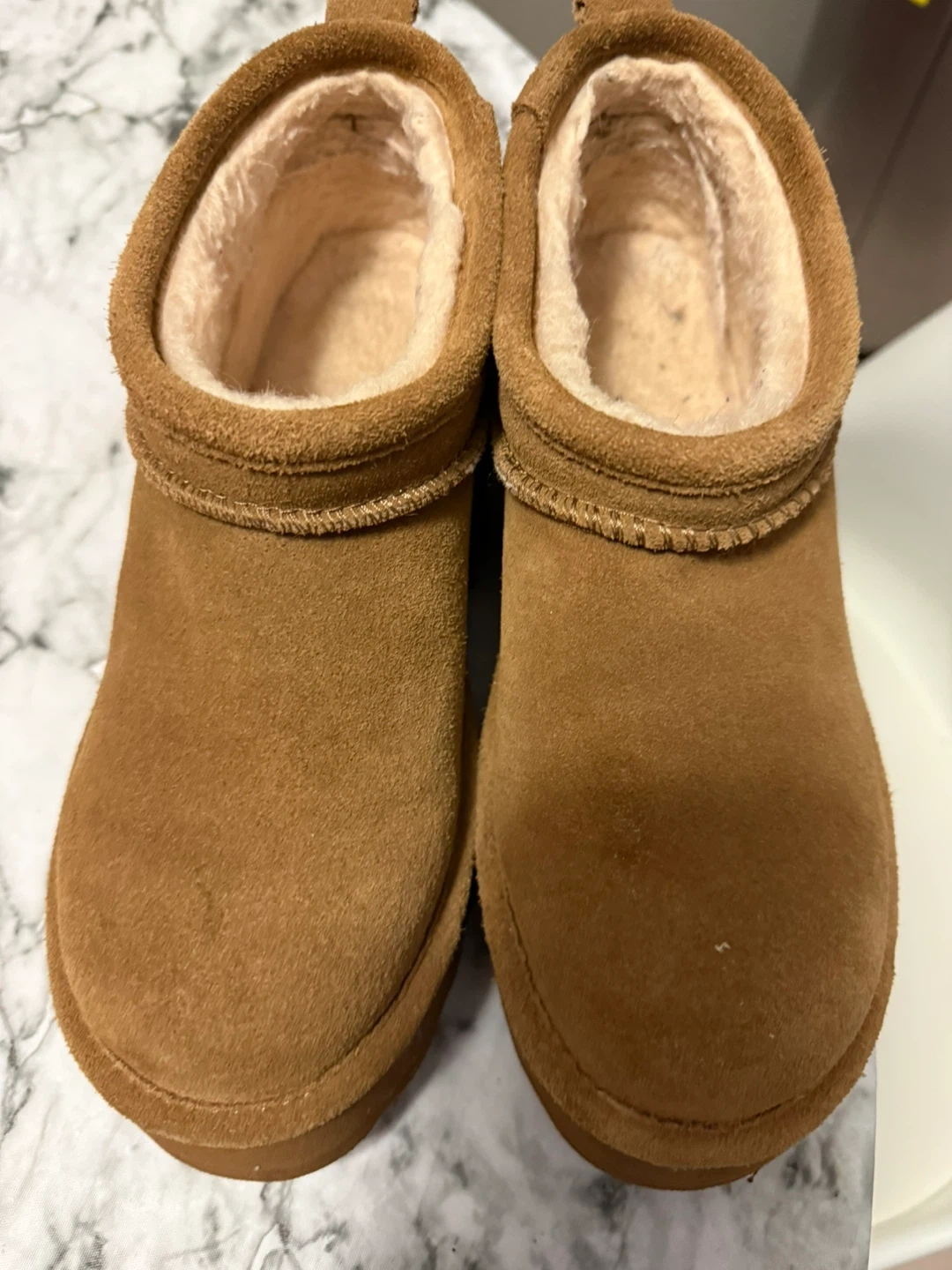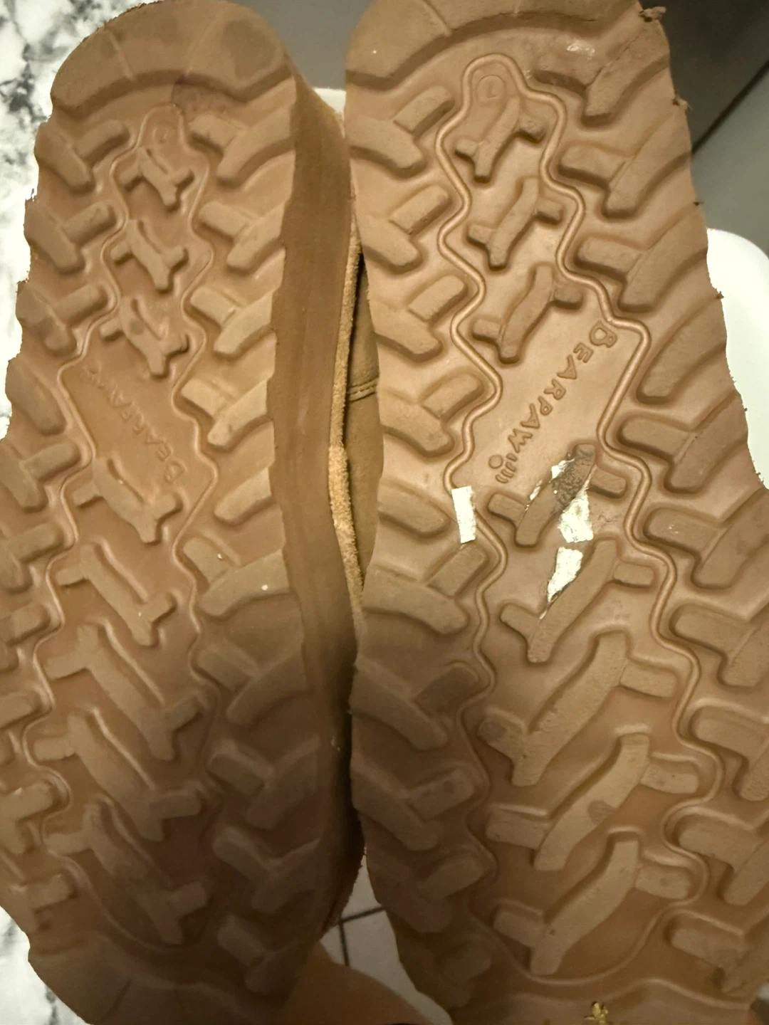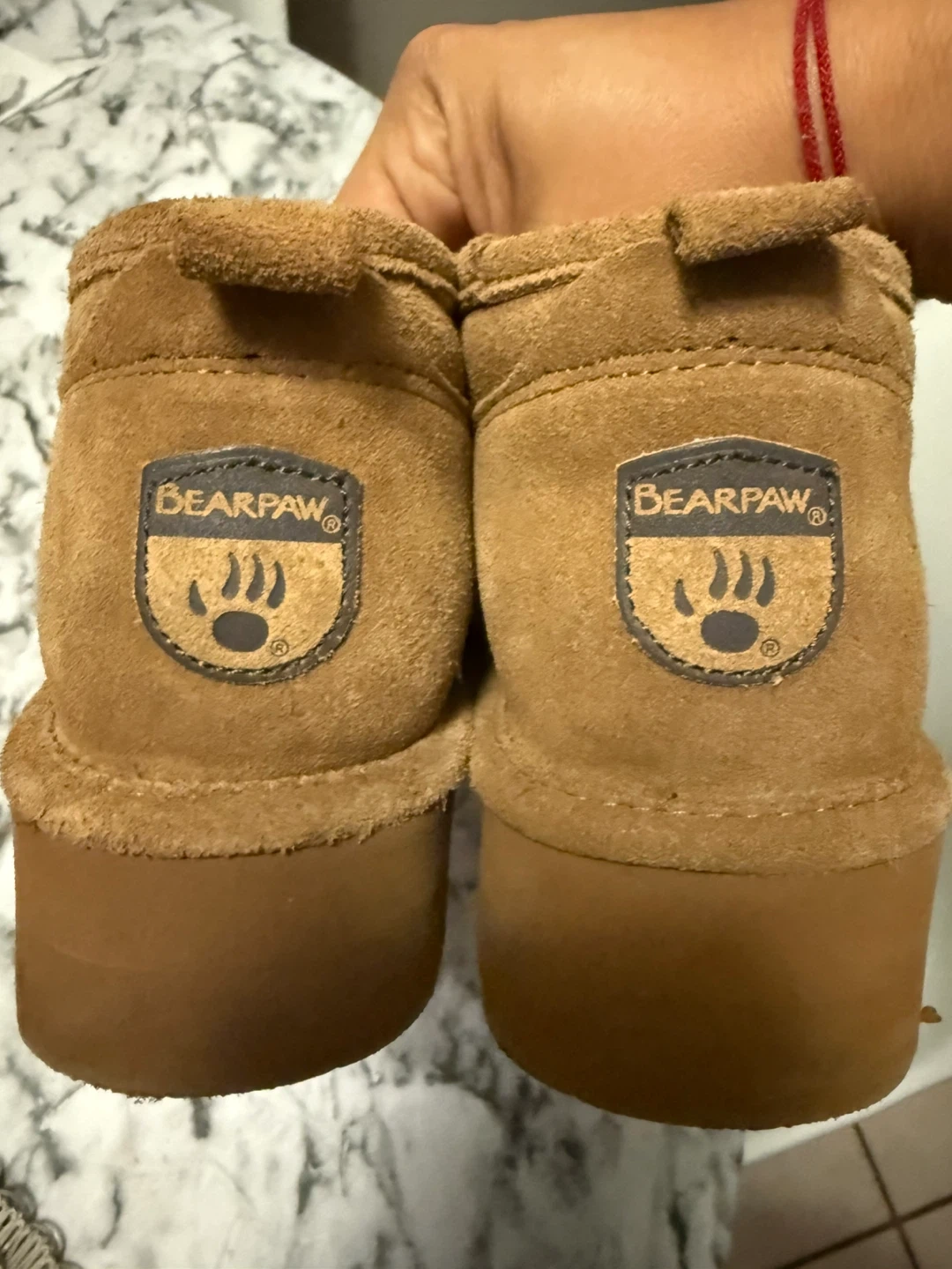 68Cozy pair of Bearpaw boots! These are in good condition and ready for a new home. They are a light brown color and made of suede material. Perfect for keeping your feet warm and stylish!