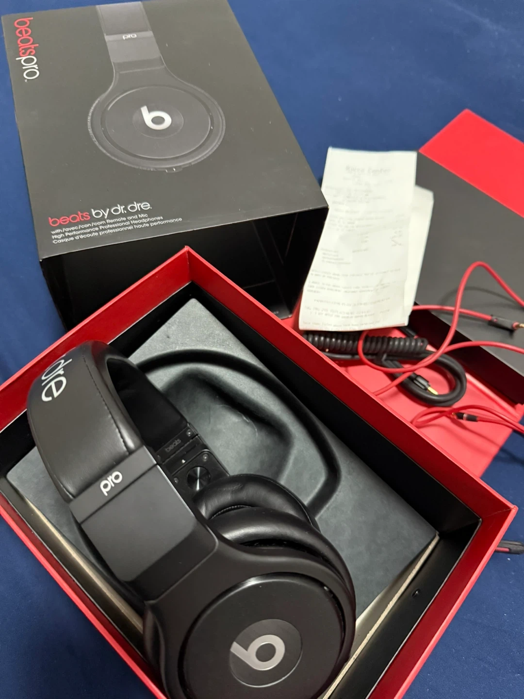 Selling a pair of Beats by Dr. Dre Beats Pro headphones in black. They come with the original box and accessories, including the cable. Great for professional sound and music enthusiasts