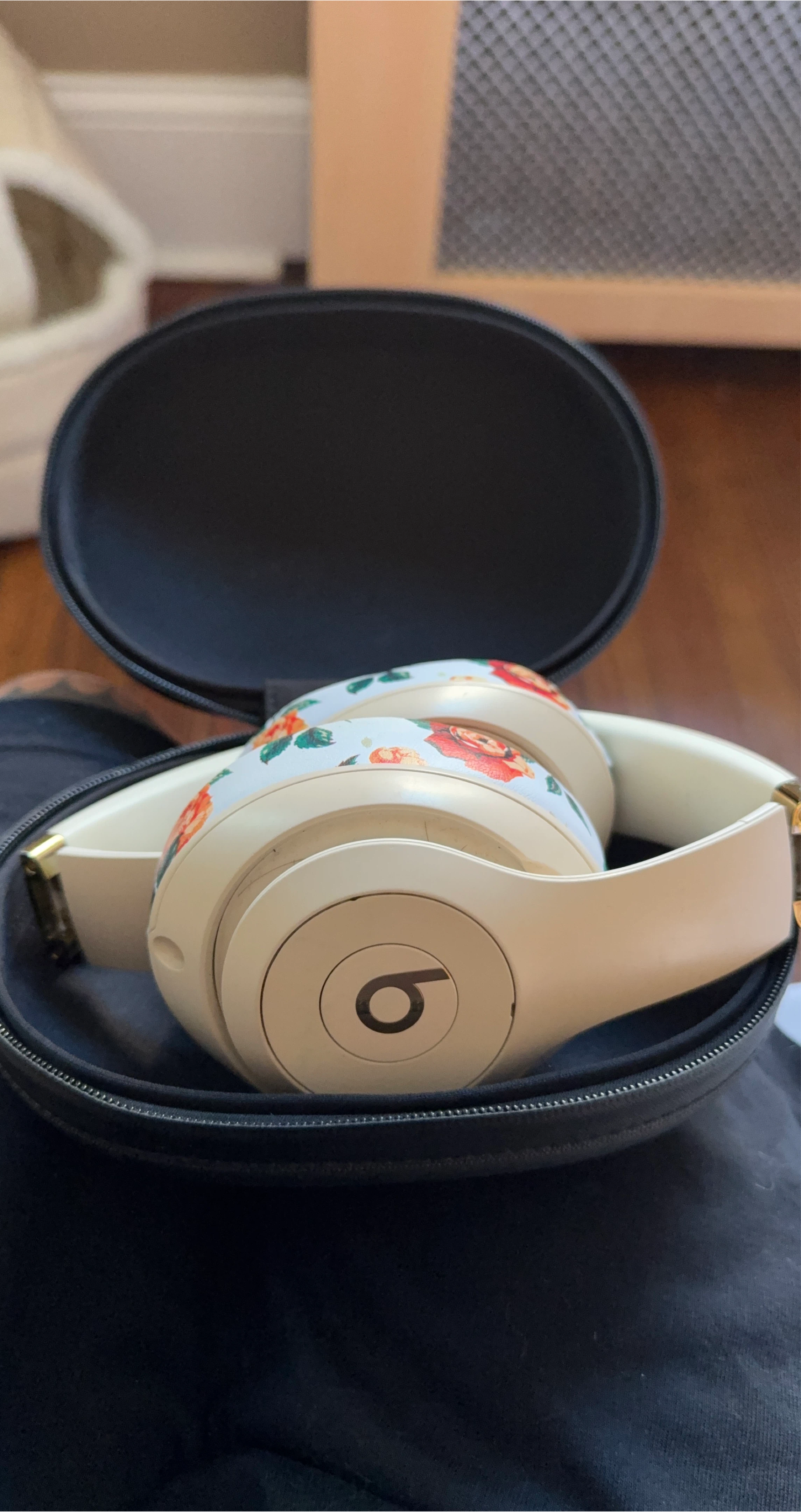 65Selling a pair of Beats by Dre headphones with a cute floral design! They come with a case for easy storage and protection. Perfect for listening to your favorite music on the go.