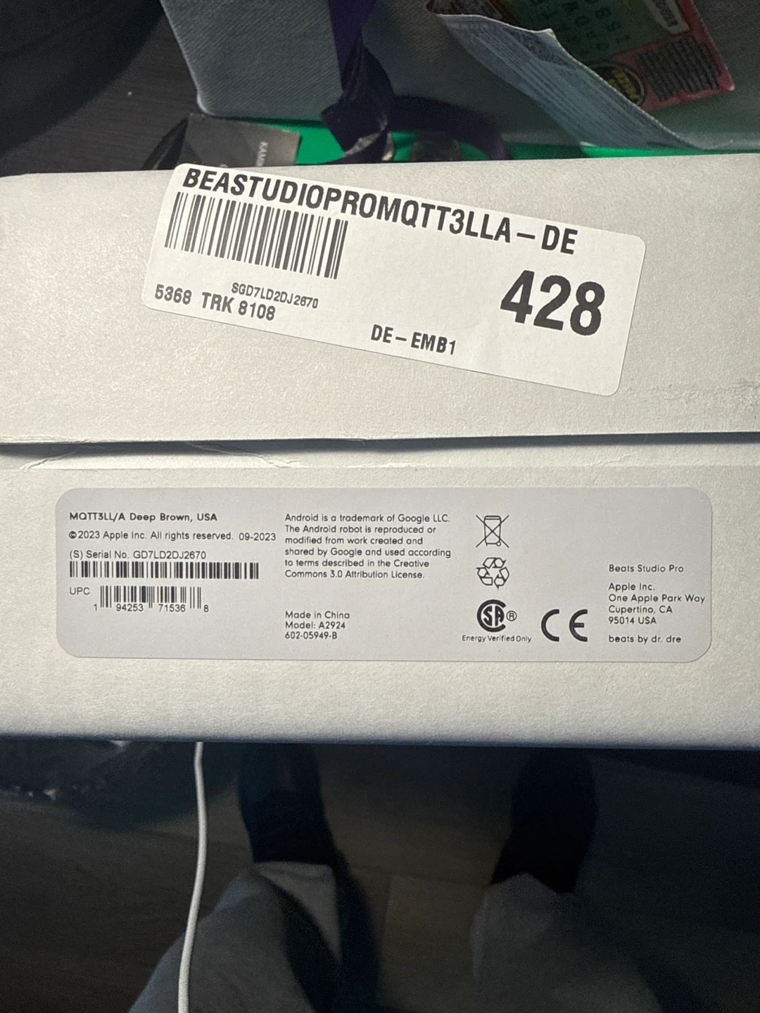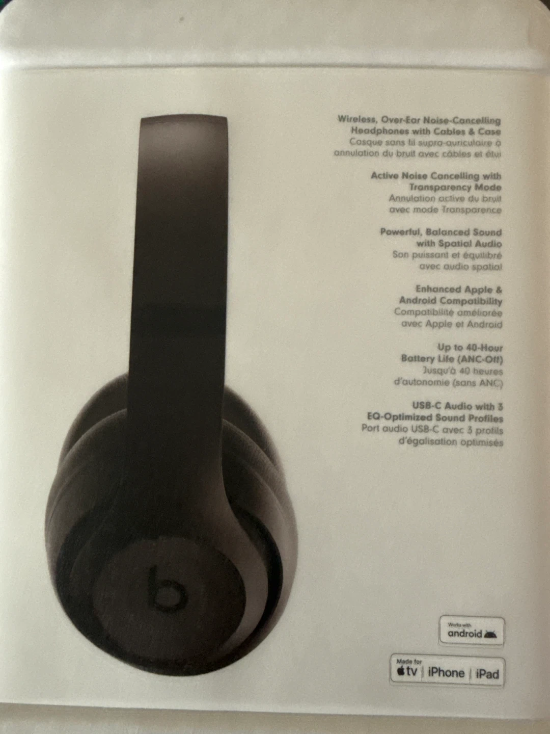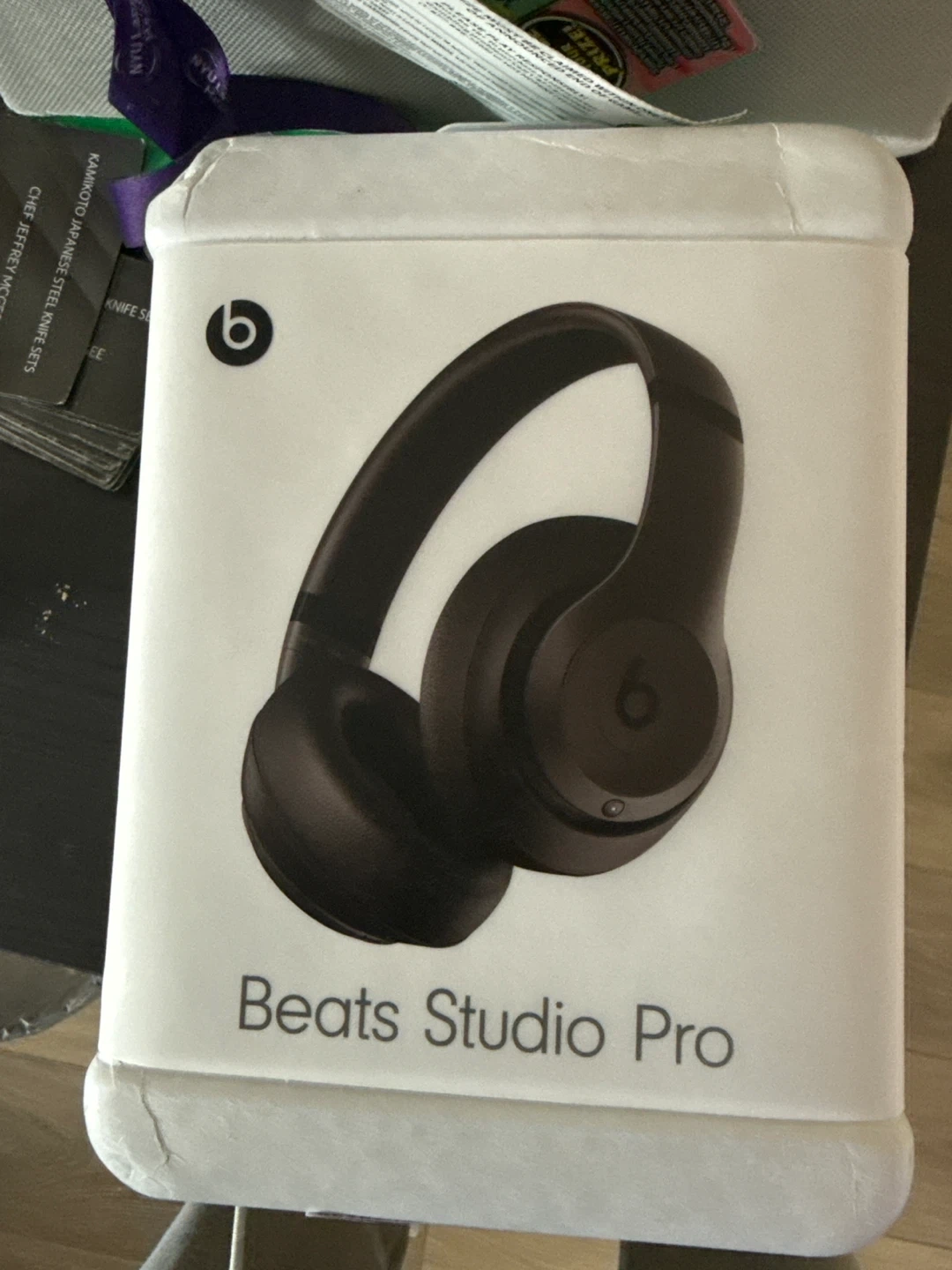 Selling a pair of Beats Studio Pro headphones in Deep Brown! They are in new condition and come with the original box. These are wireless, over-ear noise-cancelling headphones with cables and a case. They feature: - Active Noise Cancelling with Transparency Mode - Powerful, balanced sound with spatial audio - Enhanced Apple & Android compatibility - Up to 40-hour battery life (ANC Off) - USB-C Audio with 3 EQ-Optimized Sound Profiles
