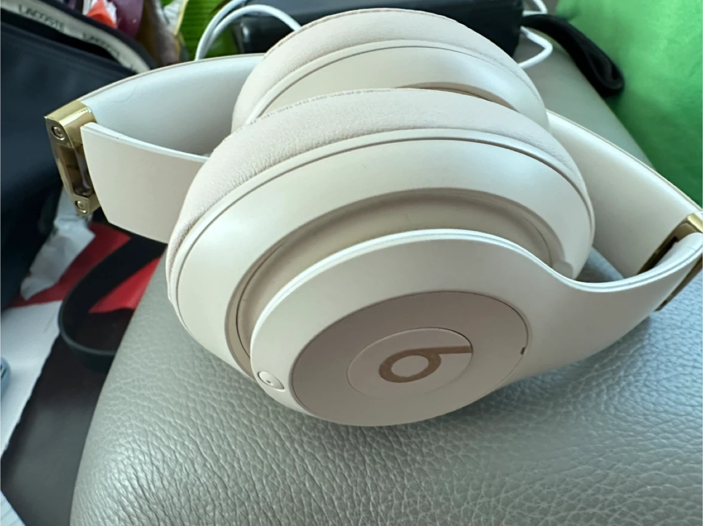 Selling a pair of Beats Studio3 Wireless headphones in the light pink color. They're in great condition and come with their carrying case. These headphones are known for their premium sound quality and comfortable fit, perfect for everyday listening