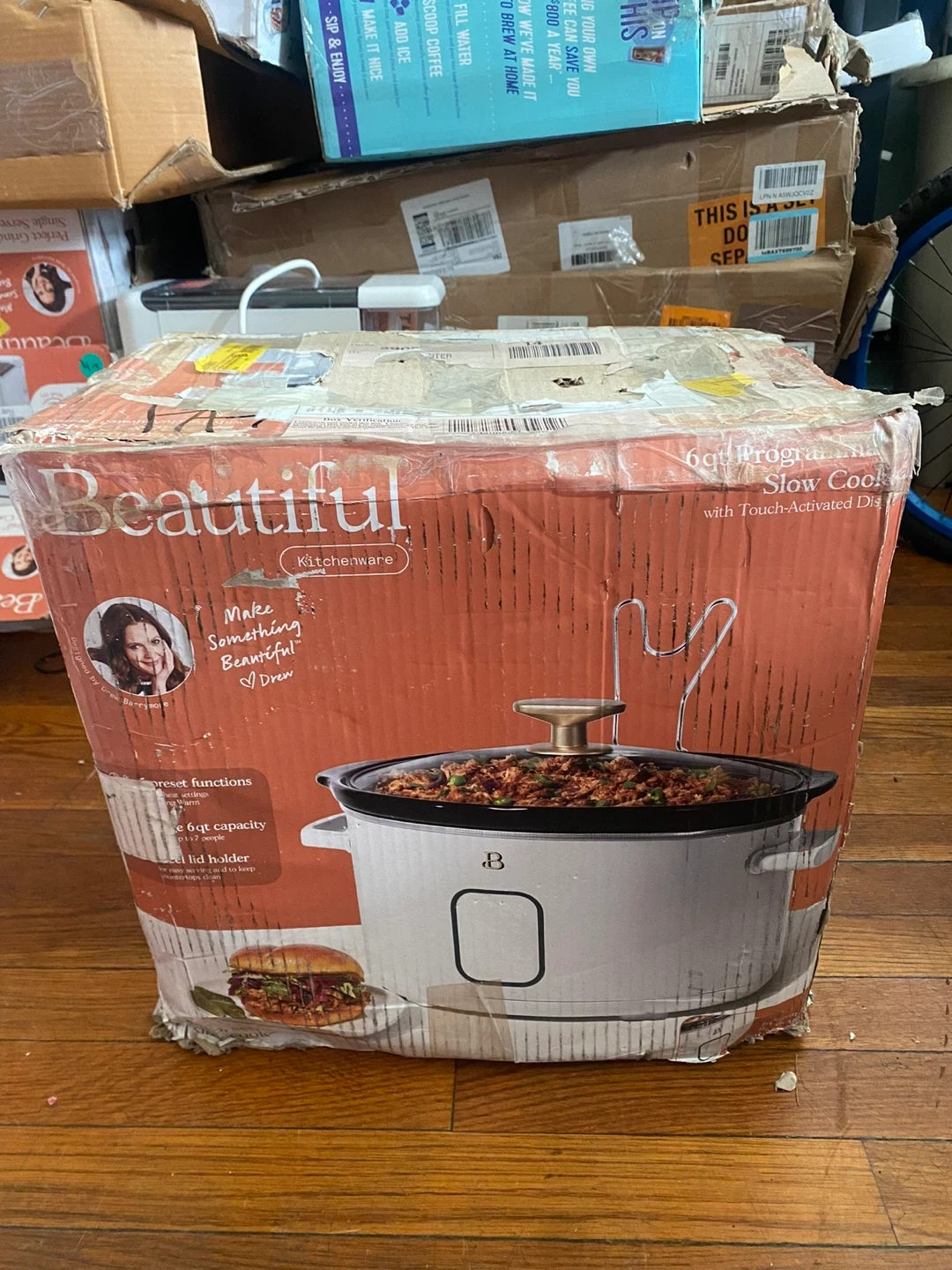 Selling a Beautiful Kitchenware 6qt programmable slow cooker! It has touch-activated display and preset functions including warm setting. It can serve up to 7 people and has a rest lid holder. It makes something beautiful designed by Drew Barrymore