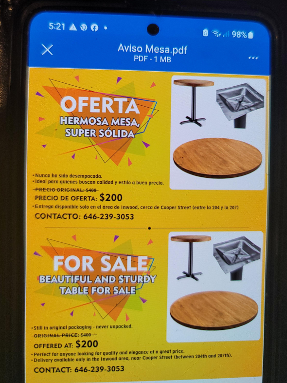 I'm selling a beautiful and sturdy table for sale. It is still in the original packaging and has never been unpacked. Perfect for anyone looking for quality and elegance at a great price. It was originally $400, but I'm offering it for $200