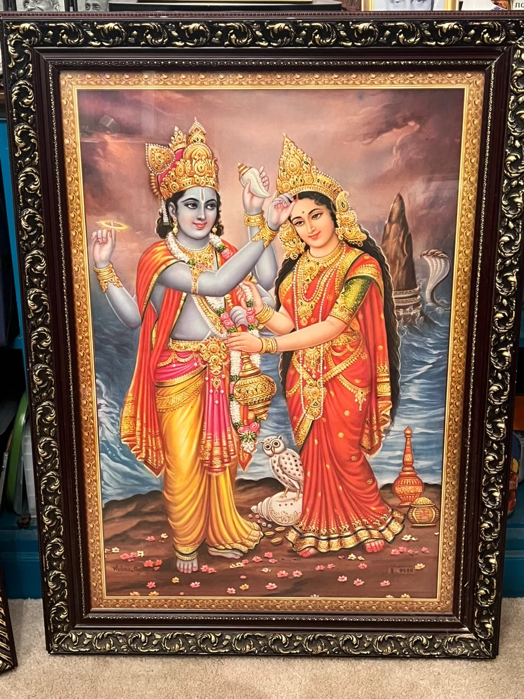 60Have the Divine blessing’s of the Great Avatars right in your home. Krishna and Radha 29”x40.” Rama,Shiva and Krishna 38”x29.” Beautifully framed and ready to hang. Get Divinely inspired and blessed. 🙏