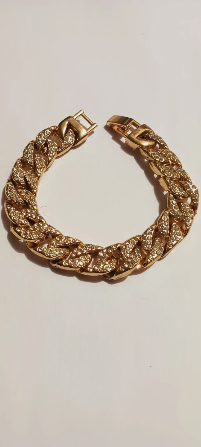 1000+Beautiful gold tone Cuban link bracelet. It has a nice weight to it and is in great condition! 8.5" long. Excellent condition. ALL MY PRICES ARE NEGOTIABLE !!