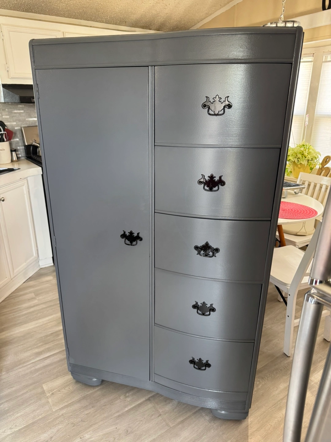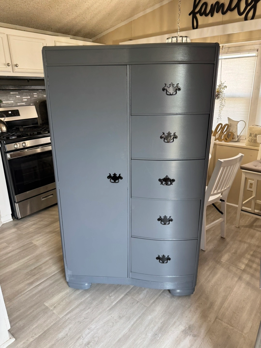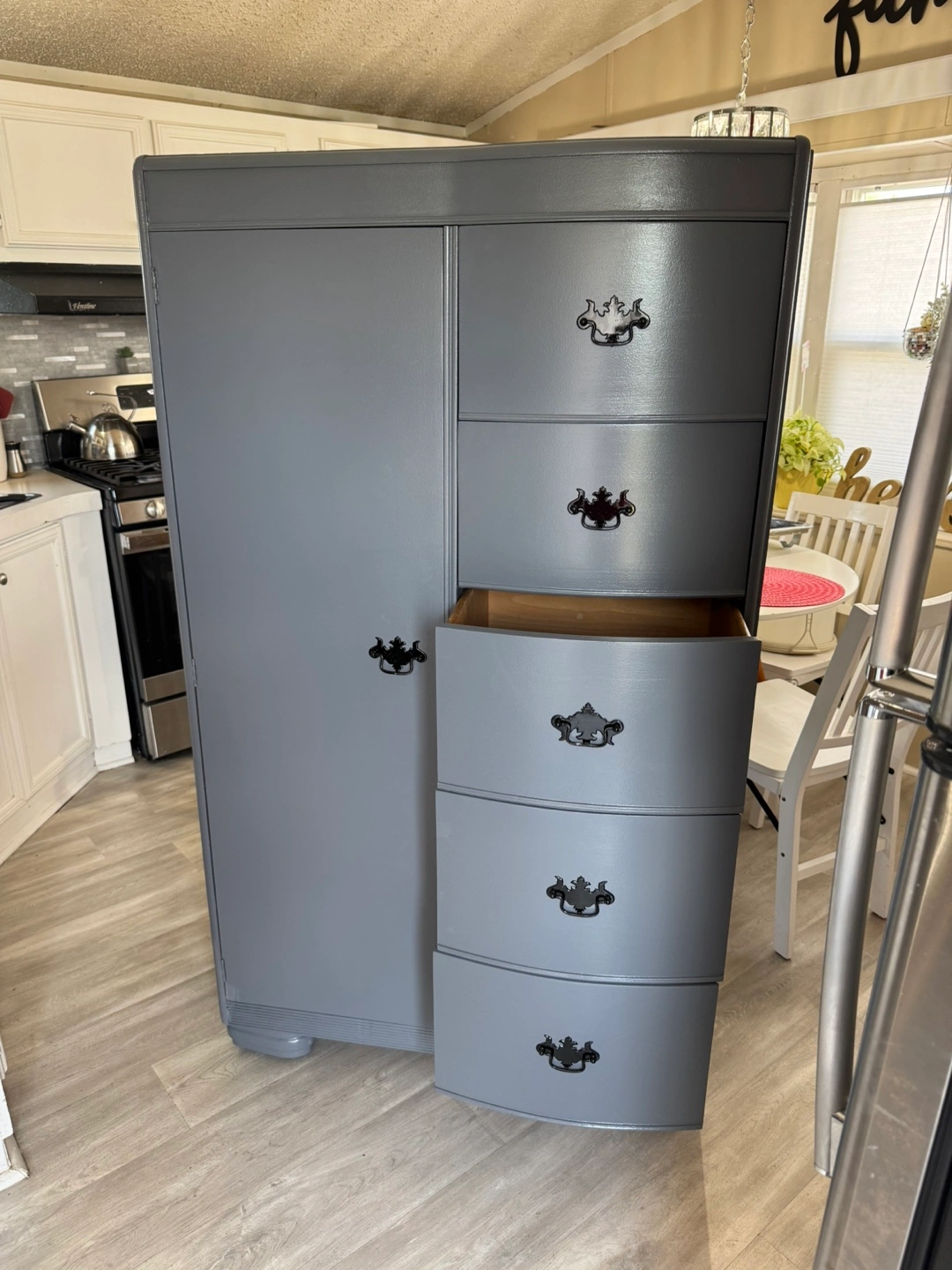 ✨✨ MEASUREMENTS BELOW ⬇️ ✨✨ BEAUTIFUL REFINISHED VINTAGE DRESSER CABINET ✨✨ SOLID WOOD AND HEAVY.. DOVETAILED DRAWERS .. DRAWERS ARE DEEP FOR STORING YOUR ITEMS. ALL DRAWERS WORK GOOD! ALL ORIGINAL HANDLES.. THIS PIECE IS IN GREAT CONDITION.. IN THE SIDE PIECE YOU CAN HANG CLOTHING.. THIS WILL LAST FOREVER. IF POSTED ITS AVAILABLE.. PICK UP IN JUSTICE BY 79th ROBERTS RD.. PLEASE BRING HELP TO LOAD IF YOU HAVE IT. FIRST COME FIRST SERVE! NO HOLDS WITHOUT DEPOSIT ( 1 day hold ) CASH ONLY ON ARRIVAL!!! CHECK OUT MY OTHER LISTINGS! Measurements 62” tall 36” wide 22” deep Thanks for looking 👀