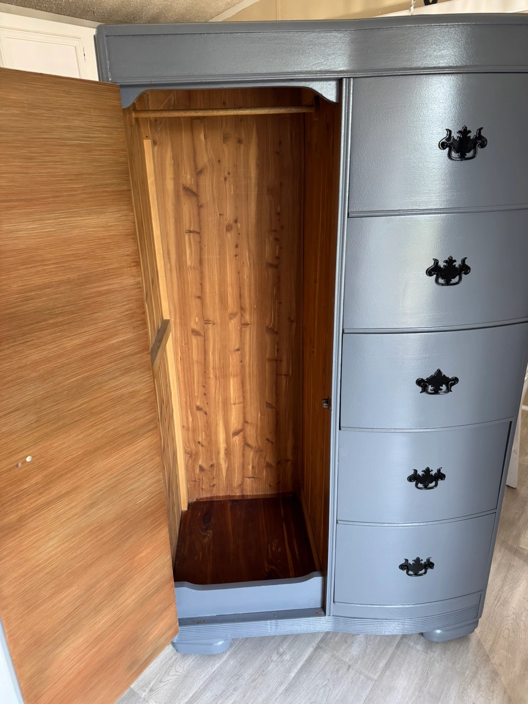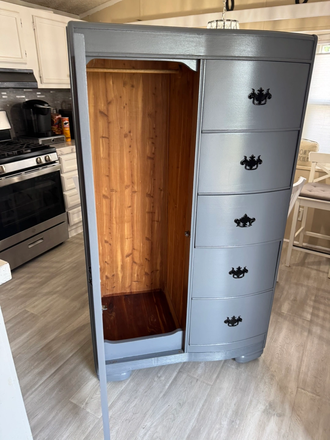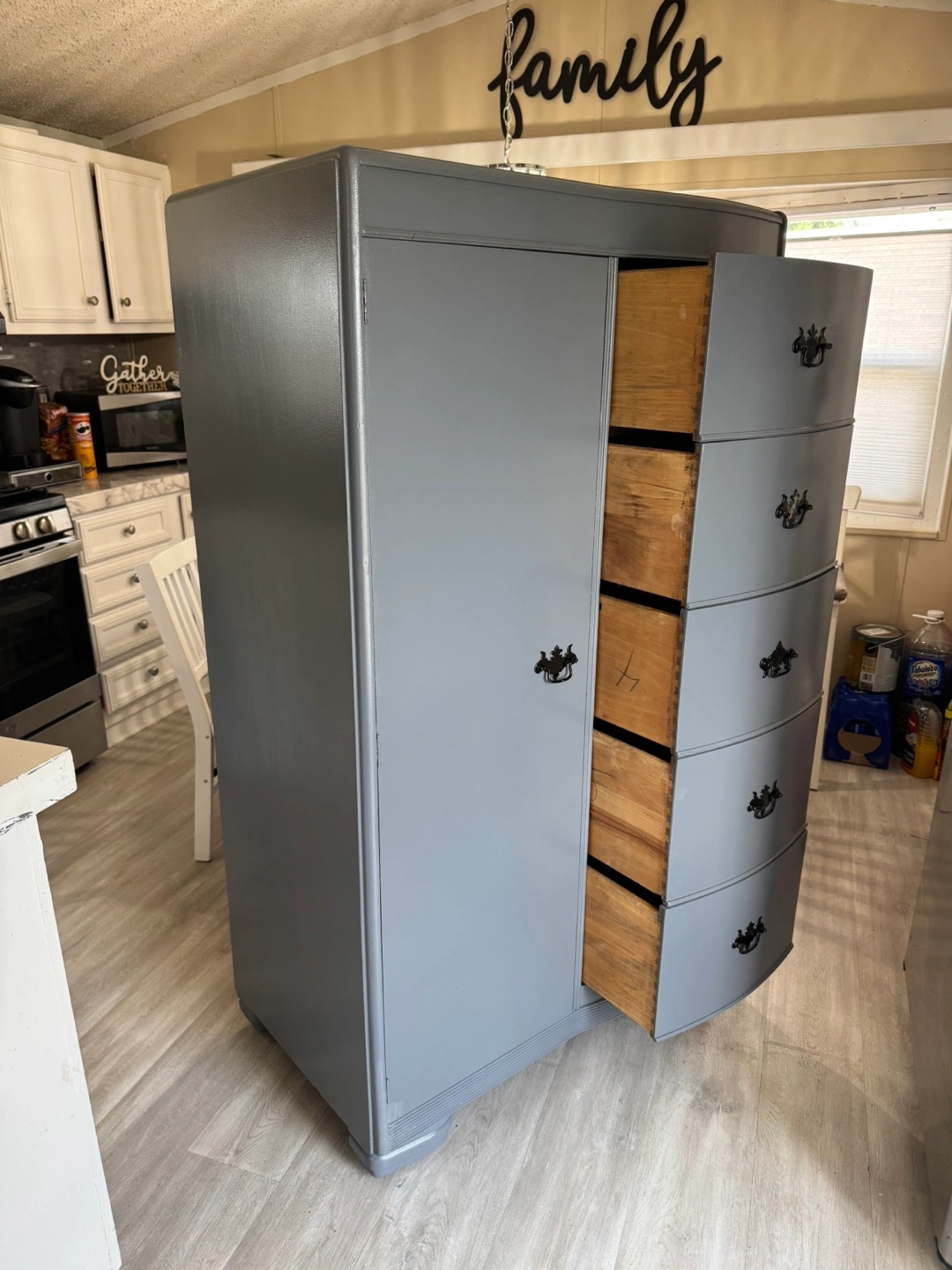 ✨✨ MEASUREMENTS BELOW ⬇️ ✨✨ BEAUTIFUL REFINISHED VINTAGE DRESSER CABINET ✨✨ SOLID WOOD AND HEAVY.. DOVETAILED DRAWERS .. DRAWERS ARE DEEP FOR STORING YOUR ITEMS. ALL DRAWERS WORK GOOD! ALL ORIGINAL HANDLES.. THIS PIECE IS IN GREAT CONDITION.. IN THE SIDE PIECE YOU CAN HANG CLOTHING.. THIS WILL LAST FOREVER. IF POSTED ITS AVAILABLE.. PICK UP IN JUSTICE BY 79th ROBERTS RD.. PLEASE BRING HELP TO LOAD IF YOU HAVE IT. FIRST COME FIRST SERVE! NO HOLDS WITHOUT DEPOSIT ( 1 day hold ) CASH ONLY ON ARRIVAL!!! CHECK OUT MY OTHER LISTINGS! Measurements 62” tall 36” wide 22” deep Thanks for looking 👀