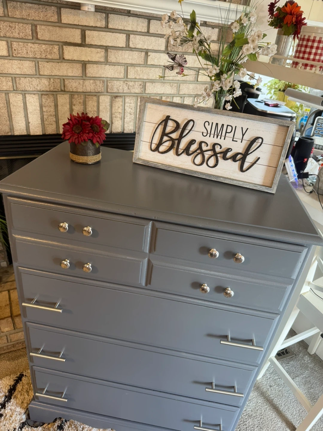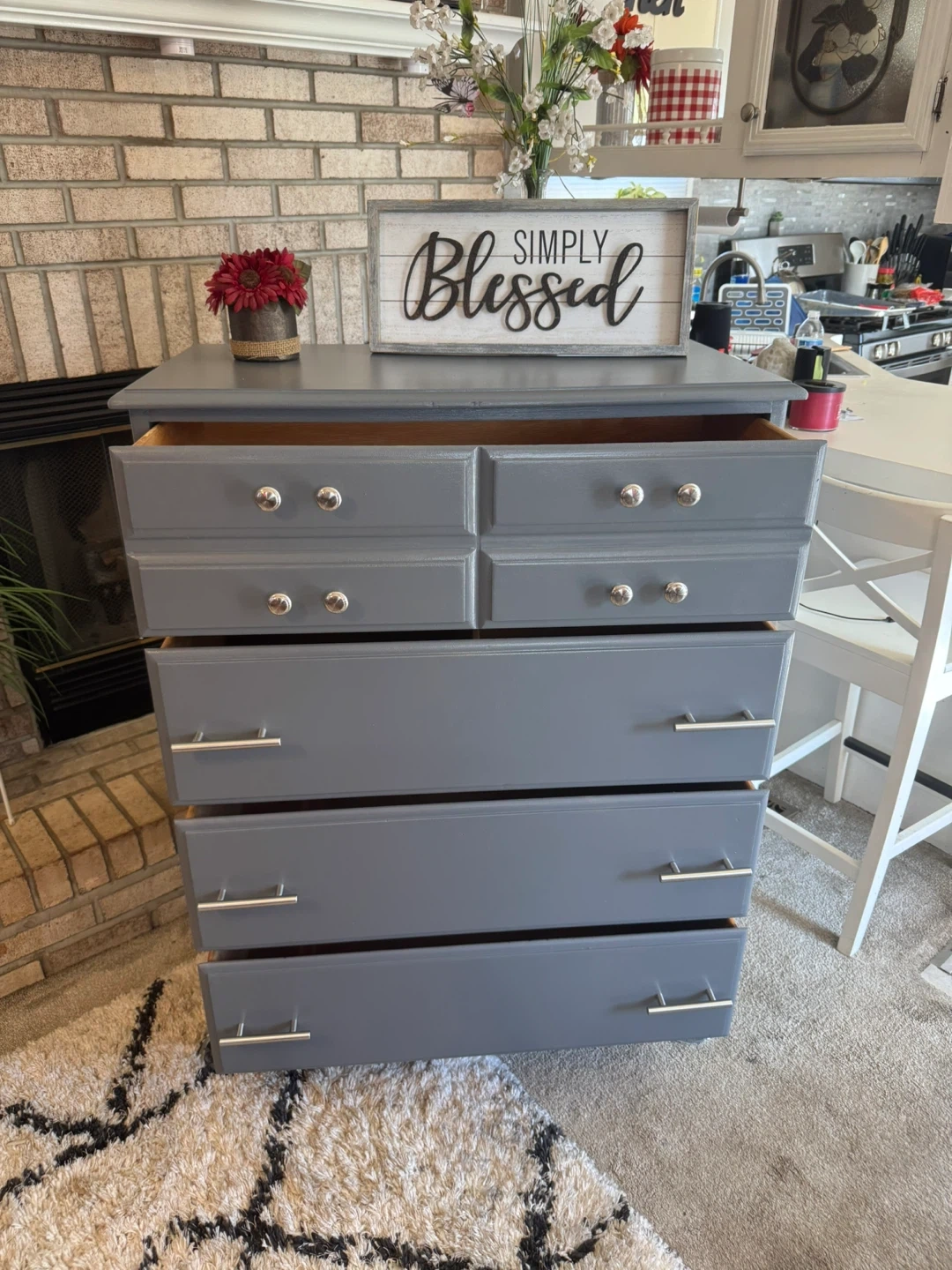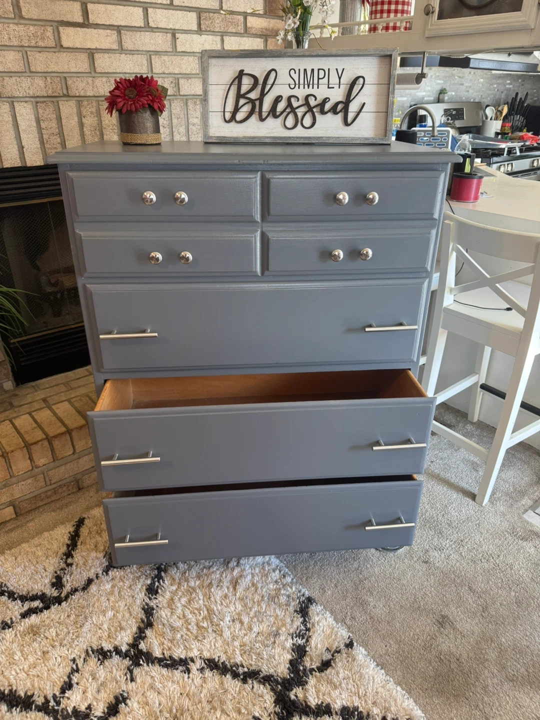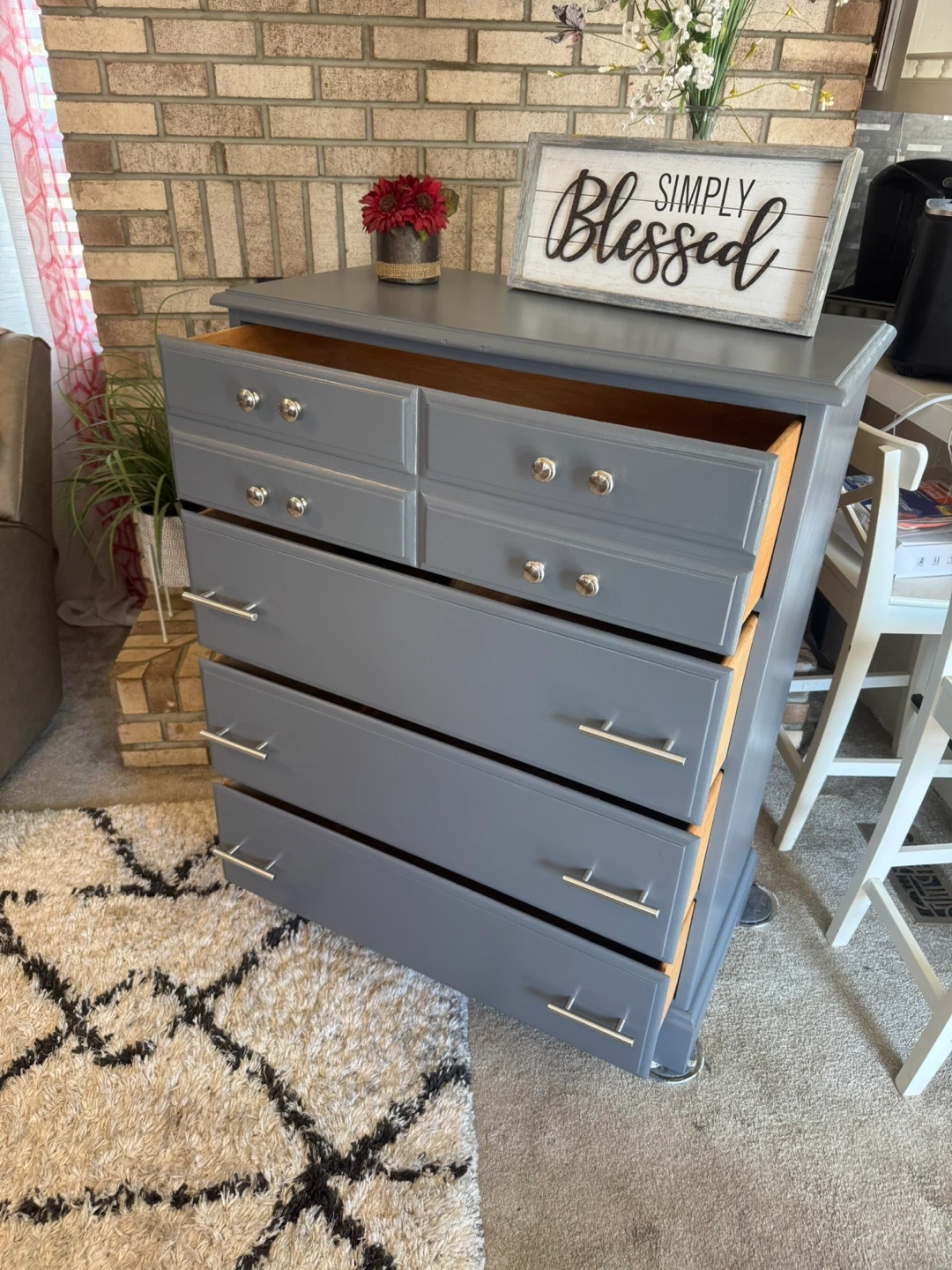 ✨✨MEASUREMENTS BELOW👇🏼✨✨ BEAUTIFUL GRAY TALL REFINISHED 4 DRAWER BASSETT DRESSER✨✨ALL DRAWERS ARE DEEP AND HOLDS ALOT.. ALL WOOD DRAWERS OPEN AND CLOSE LIKE THEY SHOULD.. ALL NEW SILVER HARDWARE.. BEAUTIFUL DRESSER IT WONT LAST LONG SO COME TAKE A LOOK! IF POSTED ITS AVAILABLE.. PICK UP IN JUSTICE IL BY 79th ROBERTS RD.. PLEASE BRING HELP IF YOU HAVE IT.. FIRST COME FIRST SERVE.. NO HOLDS WITHOUT A SMALL DEPOSIT ( 1 day hold ) CASH ONLY ON ARRIVAL.. SERIOUS BUYERS ONLY PLEASE.. CHECK OUT MY OTHER FURNITURE LISTINGS.. I GIVE A SMALL DEAL IF YOU BUY MORE THAN ONE.. MEASUREMENTS: 44” tall 34” wide 18” deep Thanks for looking 👀