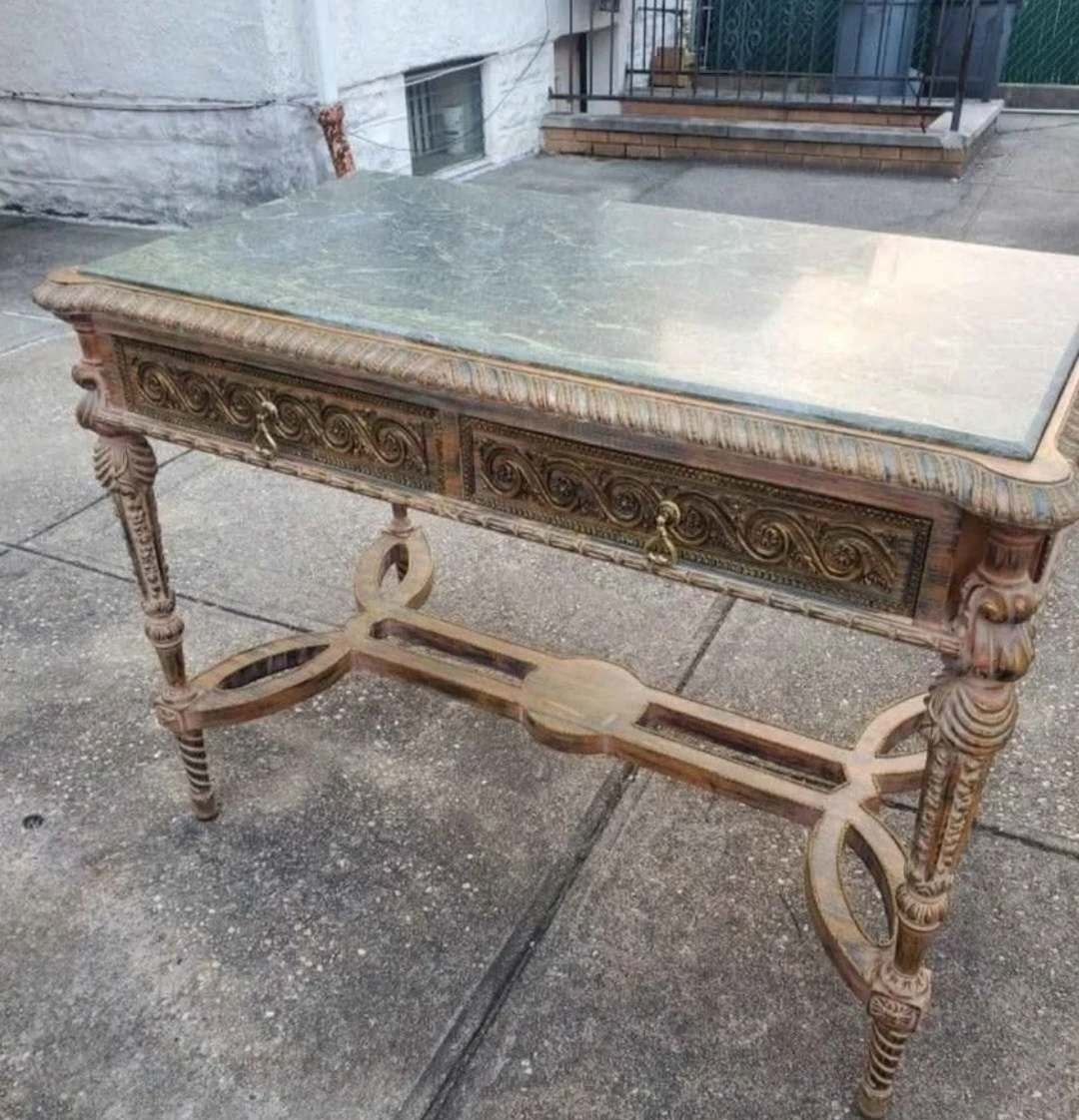 10Beautiful!! french style marbletop console table with 2 drawers..very nice hand carved wood. .Measures 45 inches long , 25 inches deep, 35 inches height. It's heavy. Its very expensive ..$450 great price!! .must pickup ASAP sheepshead bay brooklyn