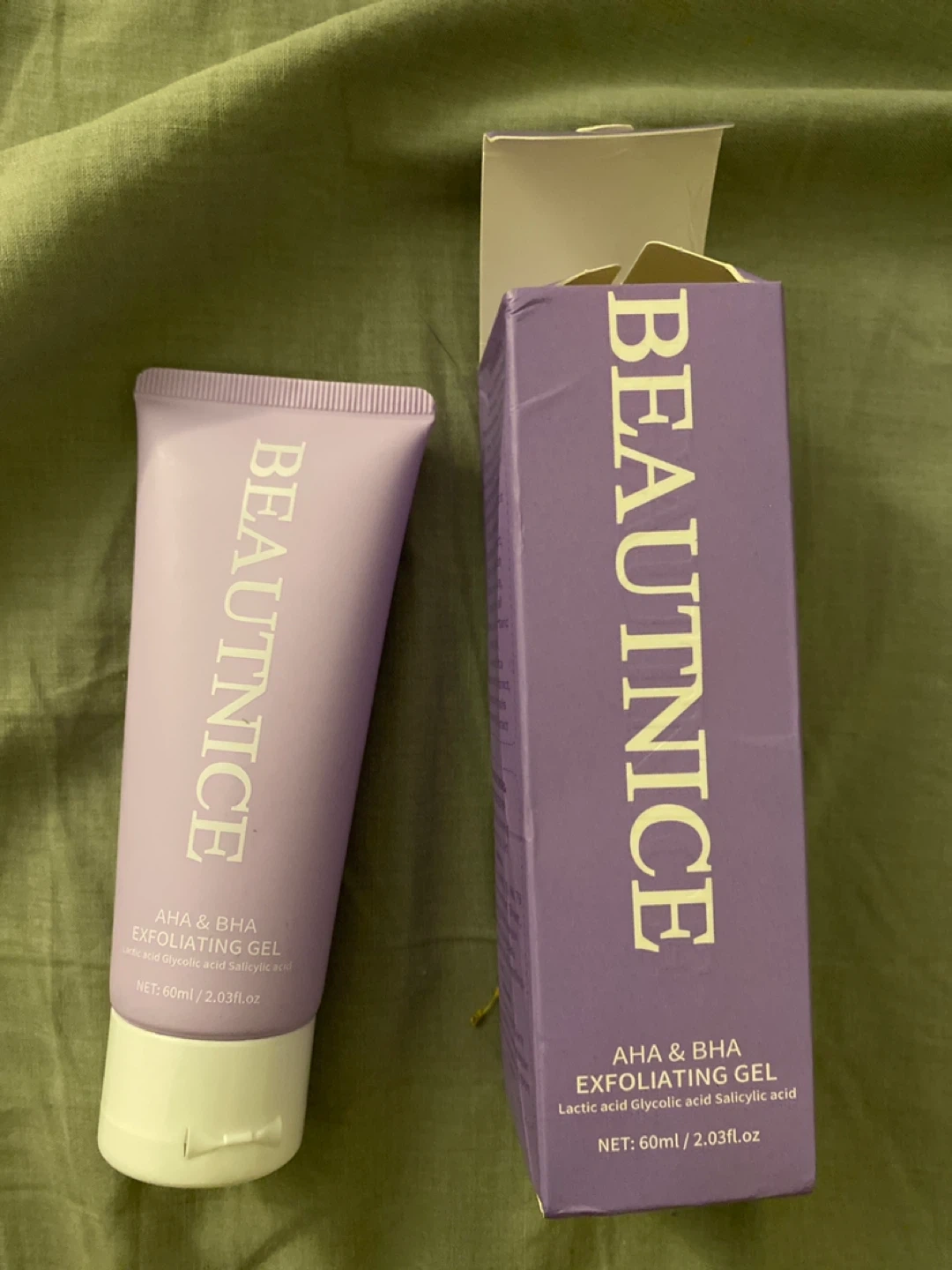 Selling a tube of BEAUTNICE AHA & BHA Exfoliating Gel! It contains lactic acid, glycolic acid, and salicylic acid. The net content is 60ml / 2.03fl.oz