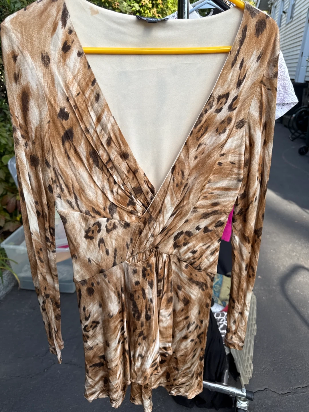 25Selling a stylish Bebe dress in size L. It features a unique animal print design, perfect for adding a touch of wildness to your wardrobe! This dress is made from comfortable material and has a flattering fit. It's in great condition and ready for a new home