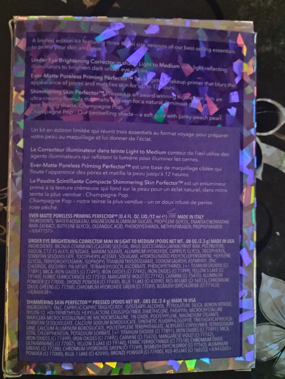 Selling a Becca 'Your Best Light' Best Sellers Kit! This kit includes travel sizes of Becca's best-selling essentials to prime your skin and glow. It features: Under Eye Brightening Corrector in Light to Medium, Ever-Matte Poreless Priming Perfector, and Shimmering Skin Perfector Pressed in Champagne Pop. A limited edition kit perfect for travel or trying out these popular by