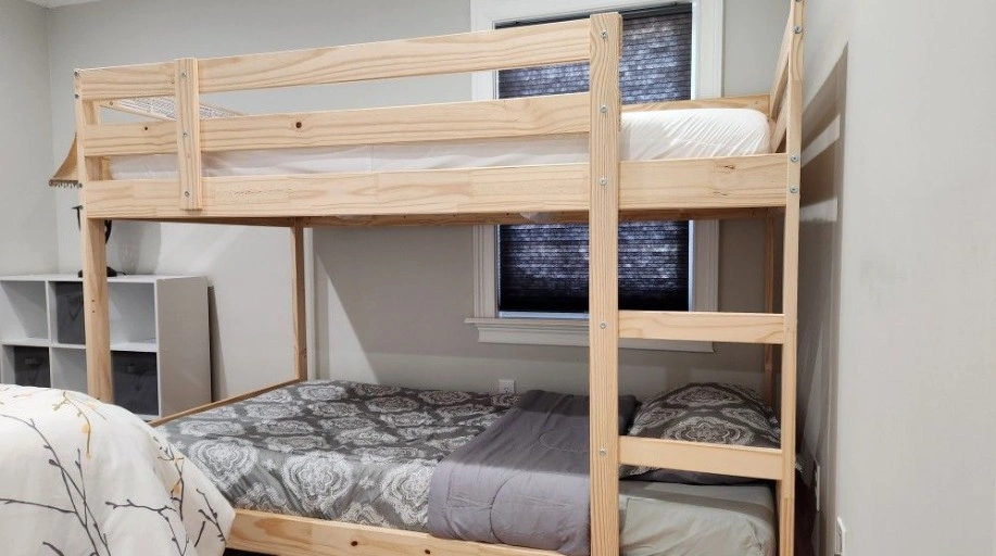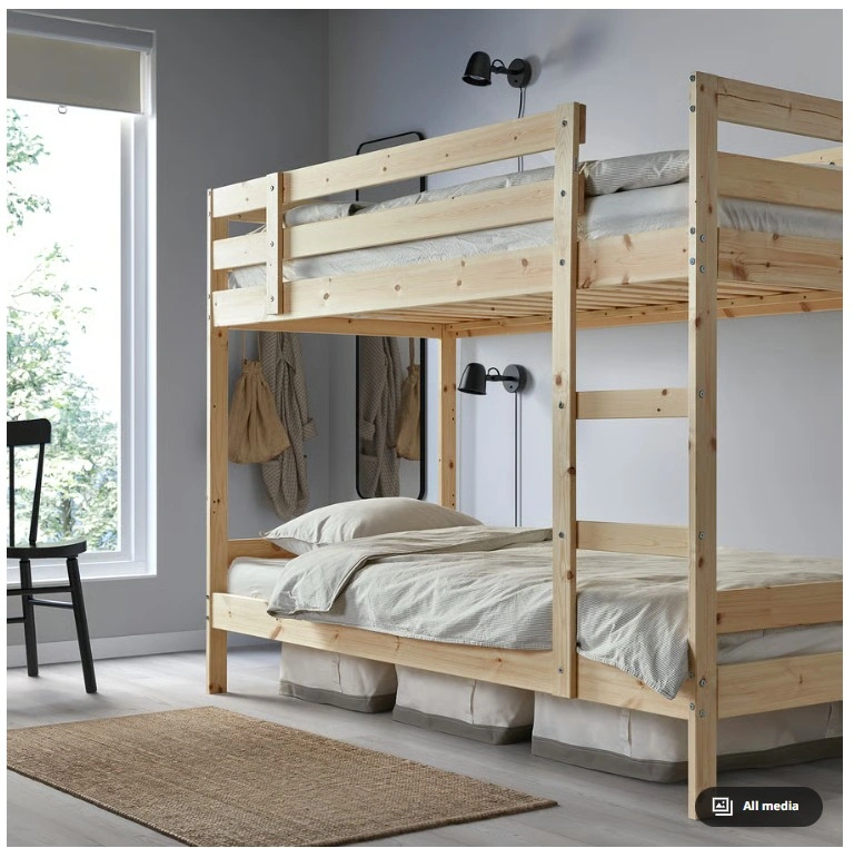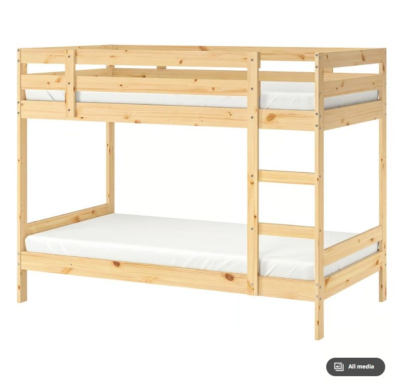 New bed, only one month old. I'm selling it because my children don't like sleeping separately. If you need help with assembly, I can help you for an extra $$.