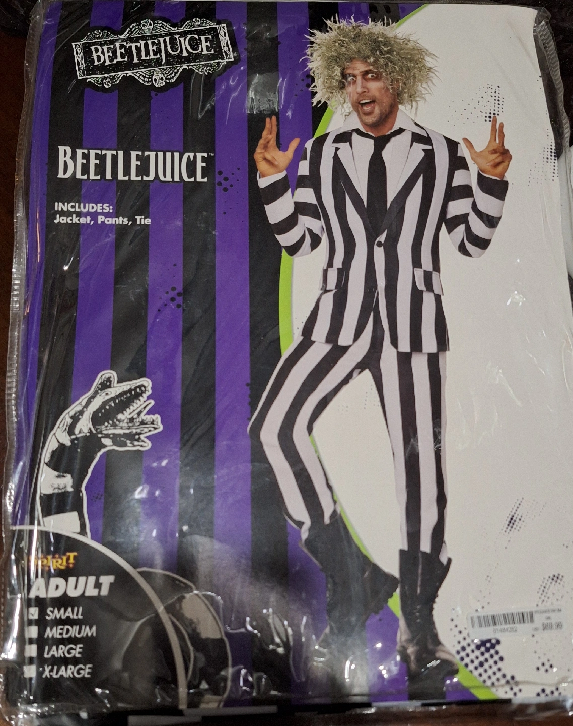 Selling a brand new, in-package Beetlejuice costume for adults! This is a size small and includes the jacket, pants, and tie. Originally bought for $69.99. Asking $45 OBO.