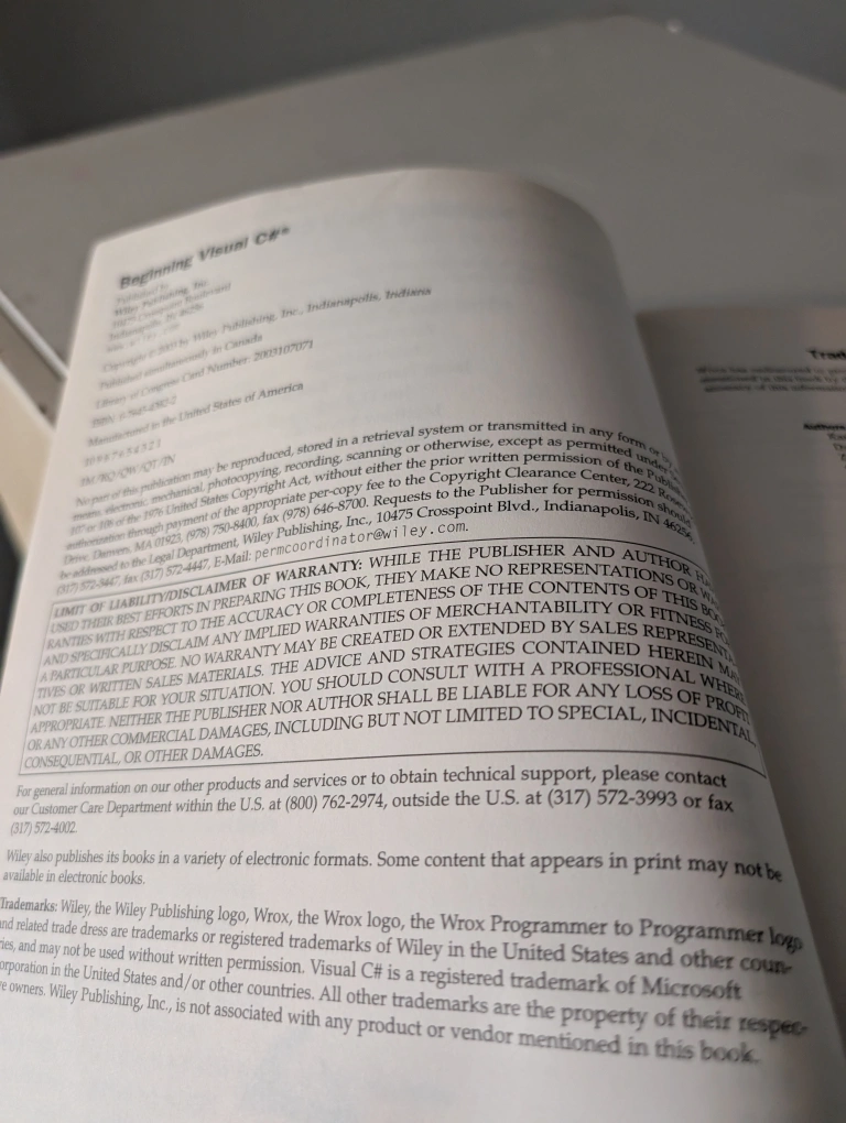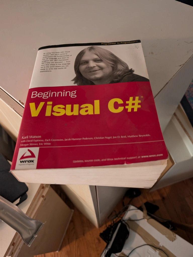 Selling "Beginning Visual C#" by Karli Watson. It's a great book for learning the fundamentals of Visual Studio .NET and the .NET Framework. Get ready to build real-world applications!