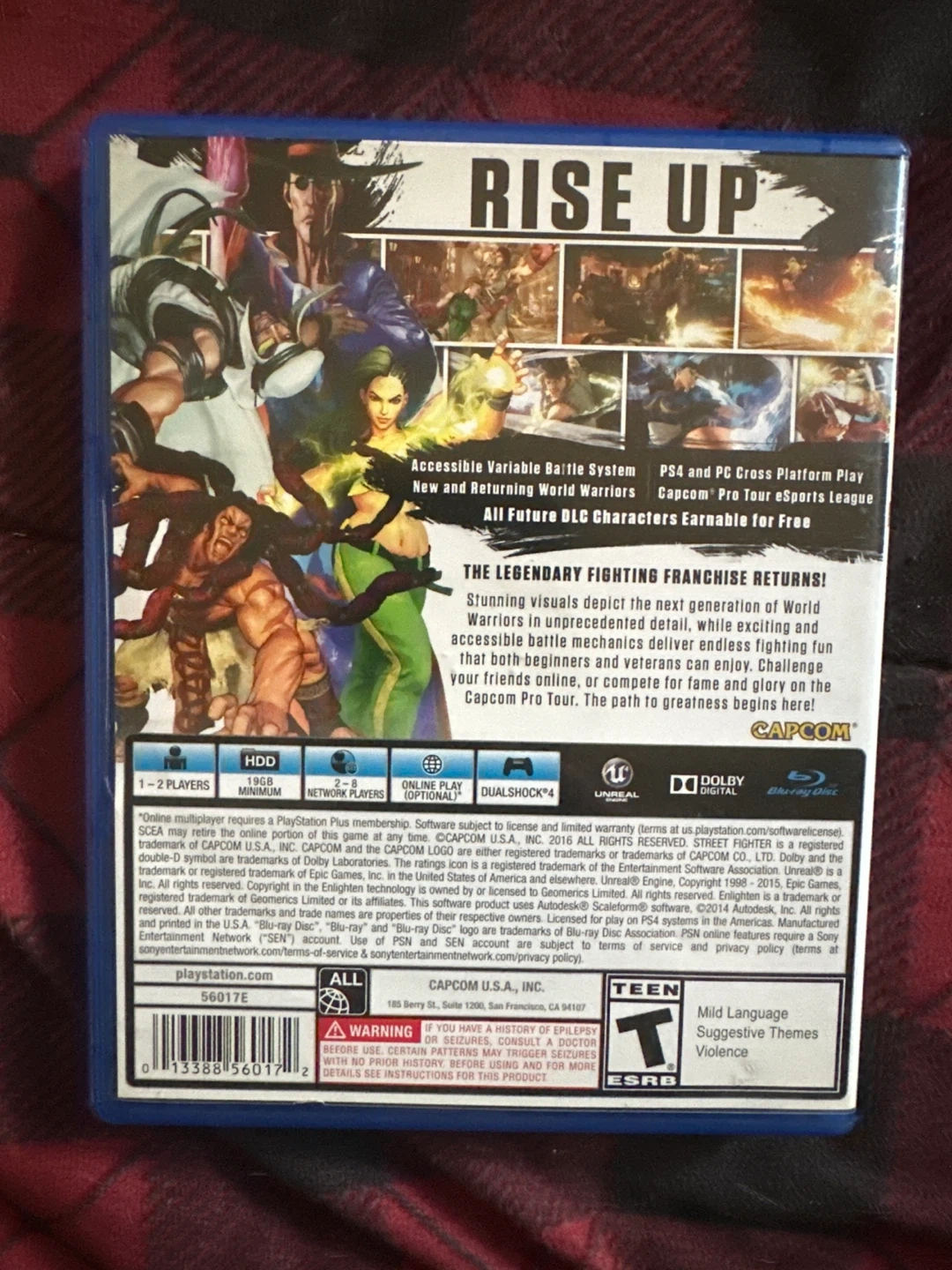 Fighting game for PlayStation 4. Features a diverse cast of characters and a competitive online system. Includes original case and disc.