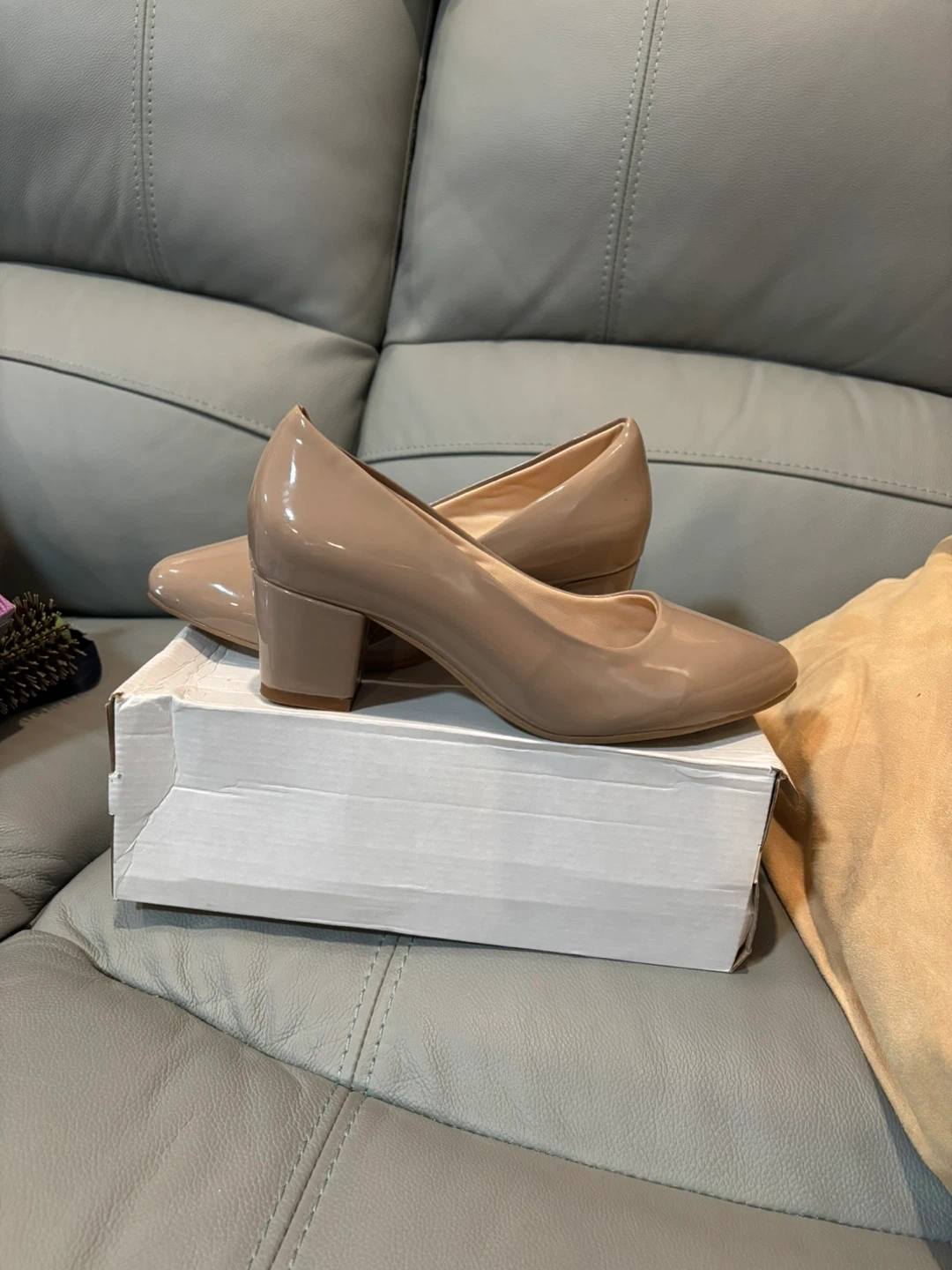 These pumps are a beautiful beige color and feature a comfortable block heel. They come with their original box Made in Ecuador Would be a perfect pair of heals for ur wife,girlfriend,or mom