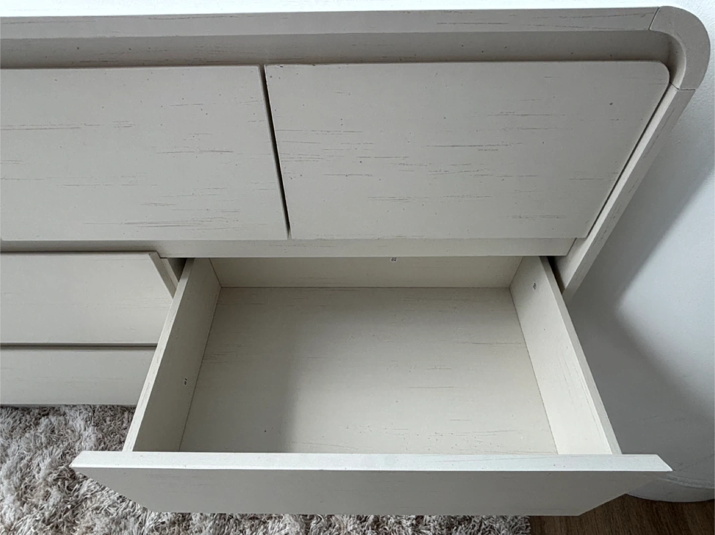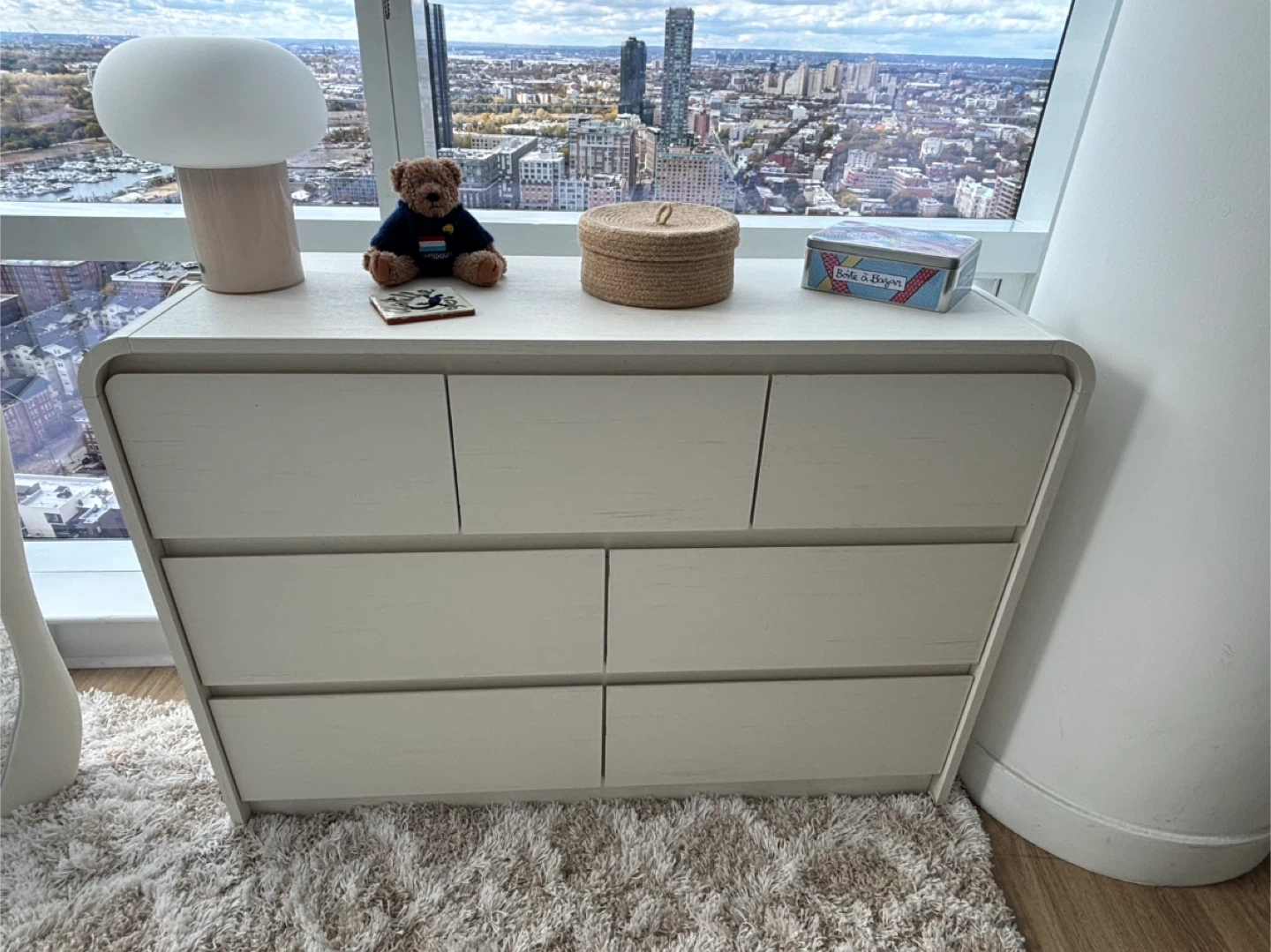 20Selling a dresser with multiple drawers. It's a great piece for any bedroom or living space. The dresser is white and has a clean, simple design that will fit in with any decor. It provides ample storage space for your clothes and other belongings
