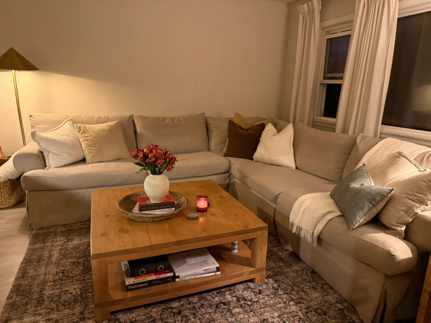 60Selling Walter E Smith linen goose down sectional sofa. It's in great condition and would be a cozy addition to any living room. 3 pieces Perfect for lounging and relaxing!