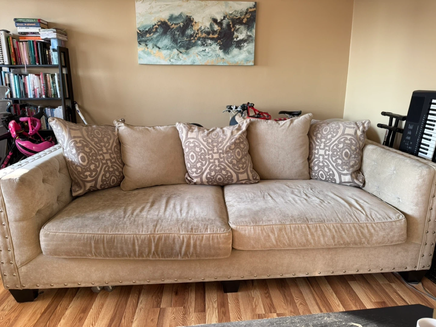 Selling a comfy beige sofa (pillows and cushions only) that's perfect for any crafting project. They are in good condition and ready for your creativity. (Couch too large to remove and has to be broken down. That’s why I’m offering pillows.
