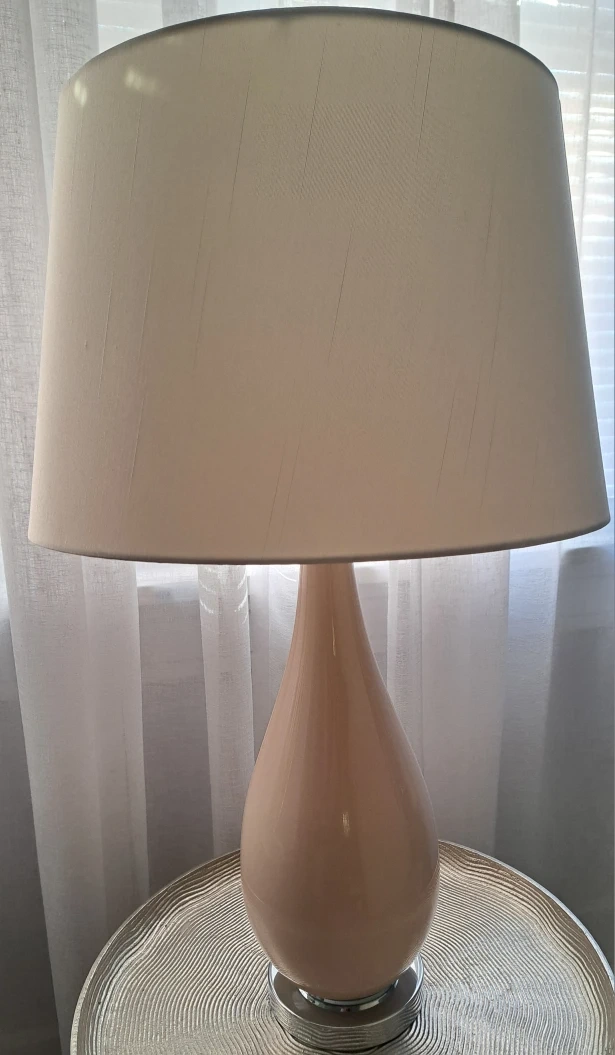 60Selling a lovely beige teardrop-shaped table lamp! It features a cream-colored lampshade and a sleek, modern design. It's perfect for adding a soft glow to any room.