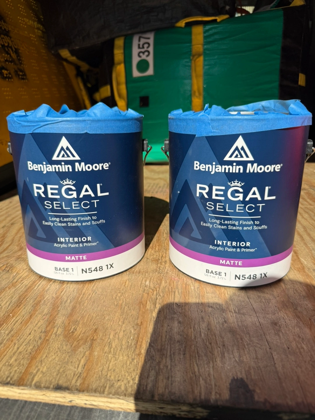 Selling 2 cans of Benjamin Moore REGAL SELECT Interior Acrylic Paint & Primer in Matte finish. The color is a custom mix, HC-48 (Bradstreet Beige). Mixed on 2025 March 09. It's a BASE 1, N548 1X (Gallon). Started a project and simply bought too much. Delivery available for an additional charge.