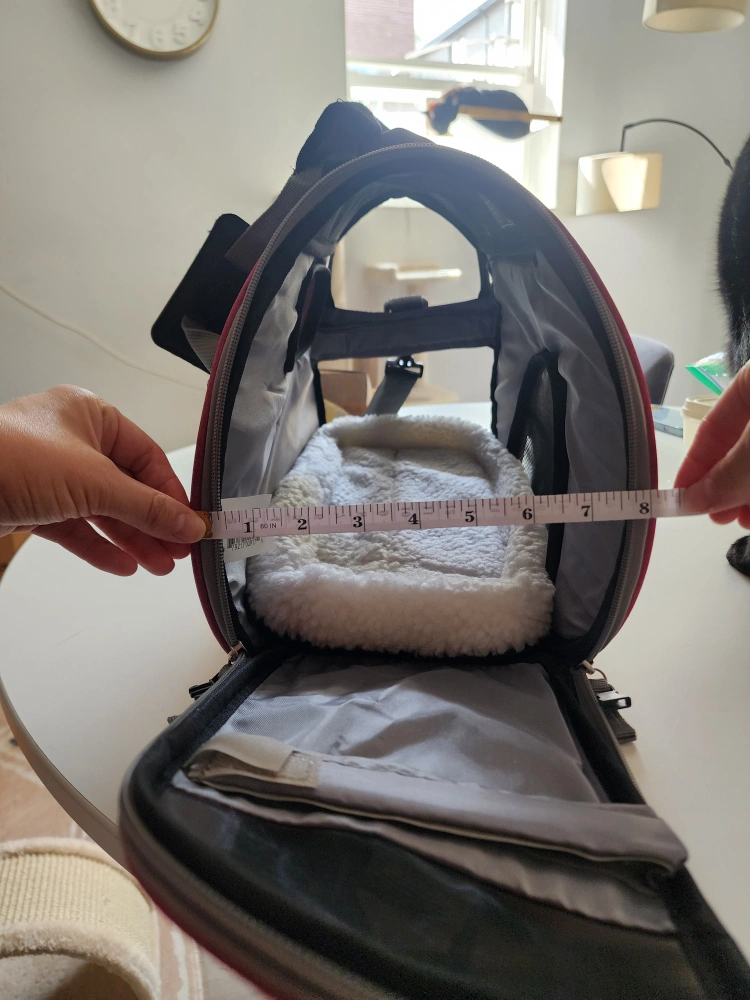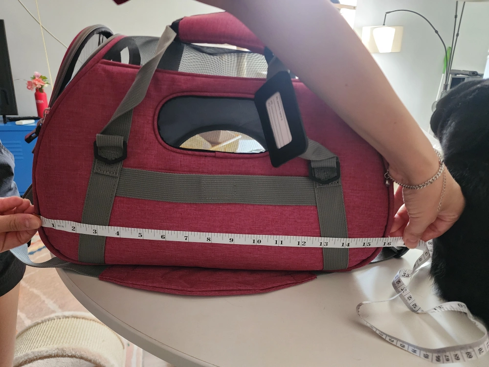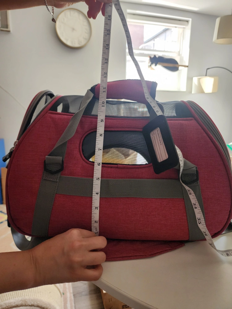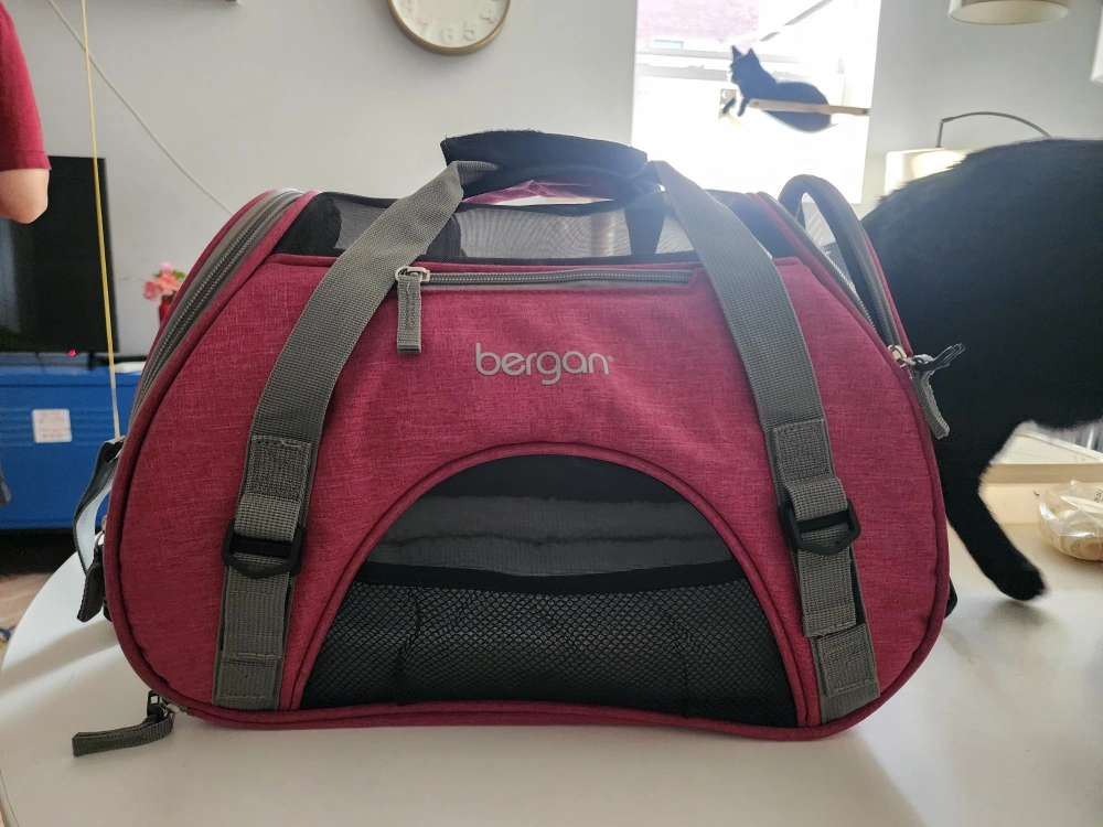 Selling a new Bergan pet carrier in burgundy The carrier measures approximately 16 inches in length, 13 inches in height, and 8 inches in width. It's a comfortable and secure way to transport your pet. bought it and didn't realize it was too small for my cat