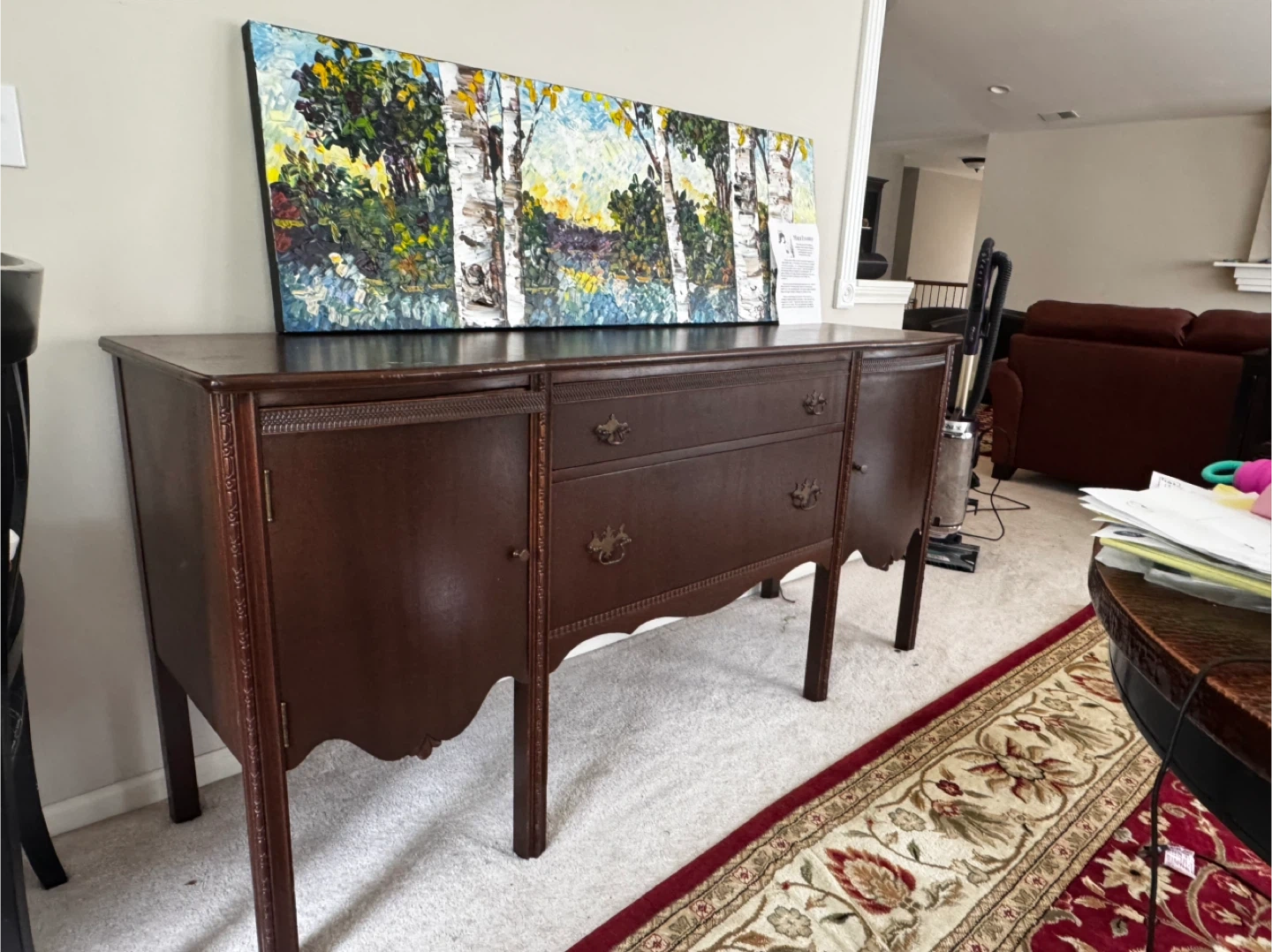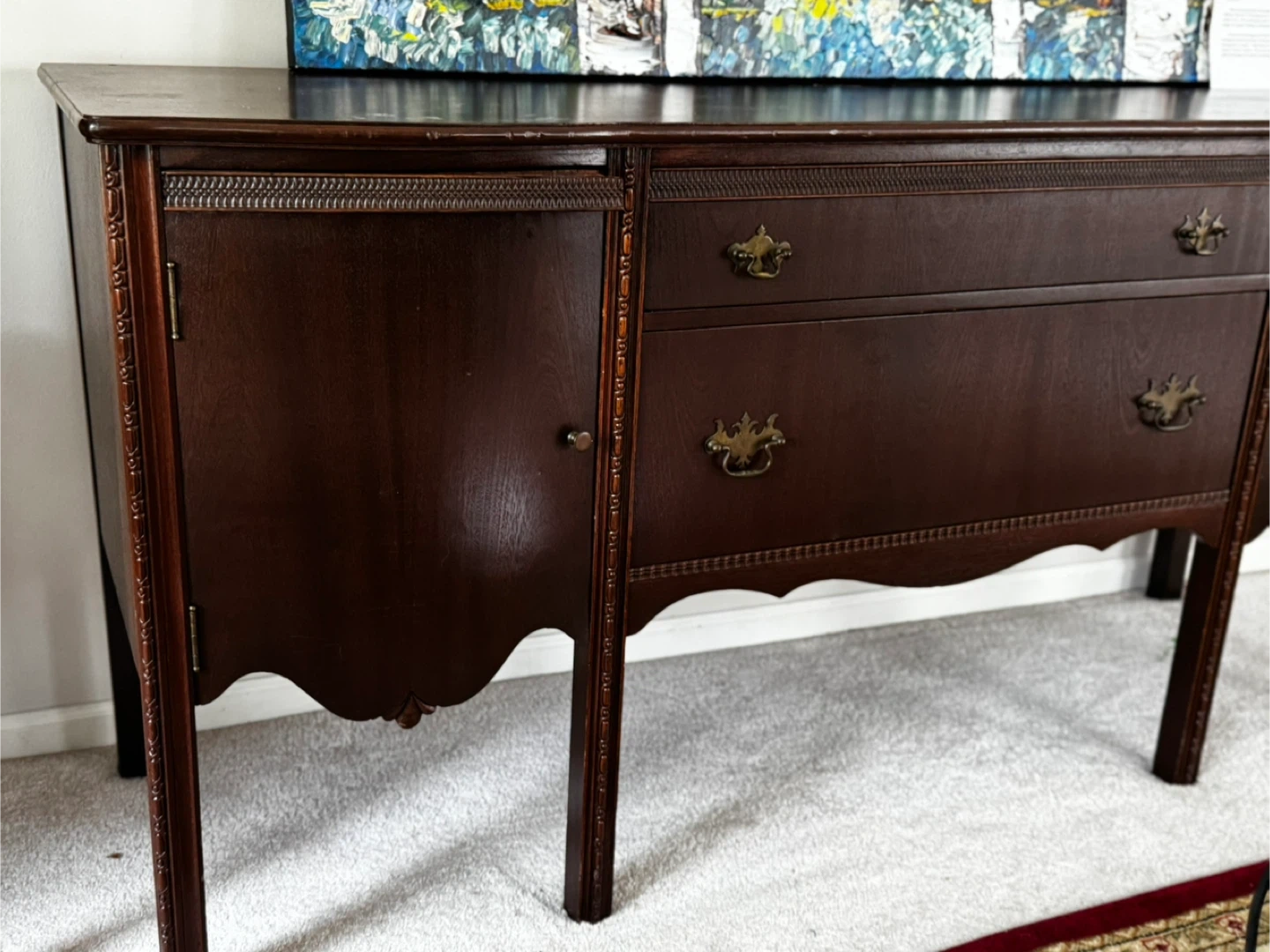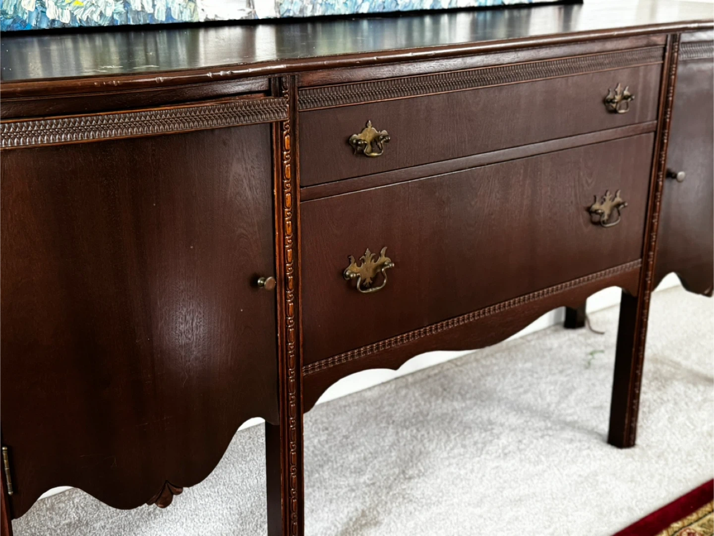 Selling an antique buffet from Berkey & Gay Furniture. It has a beautiful, classic design with detailed carvings. It's in good condition for its age and would make a great addition to any dining room or living space