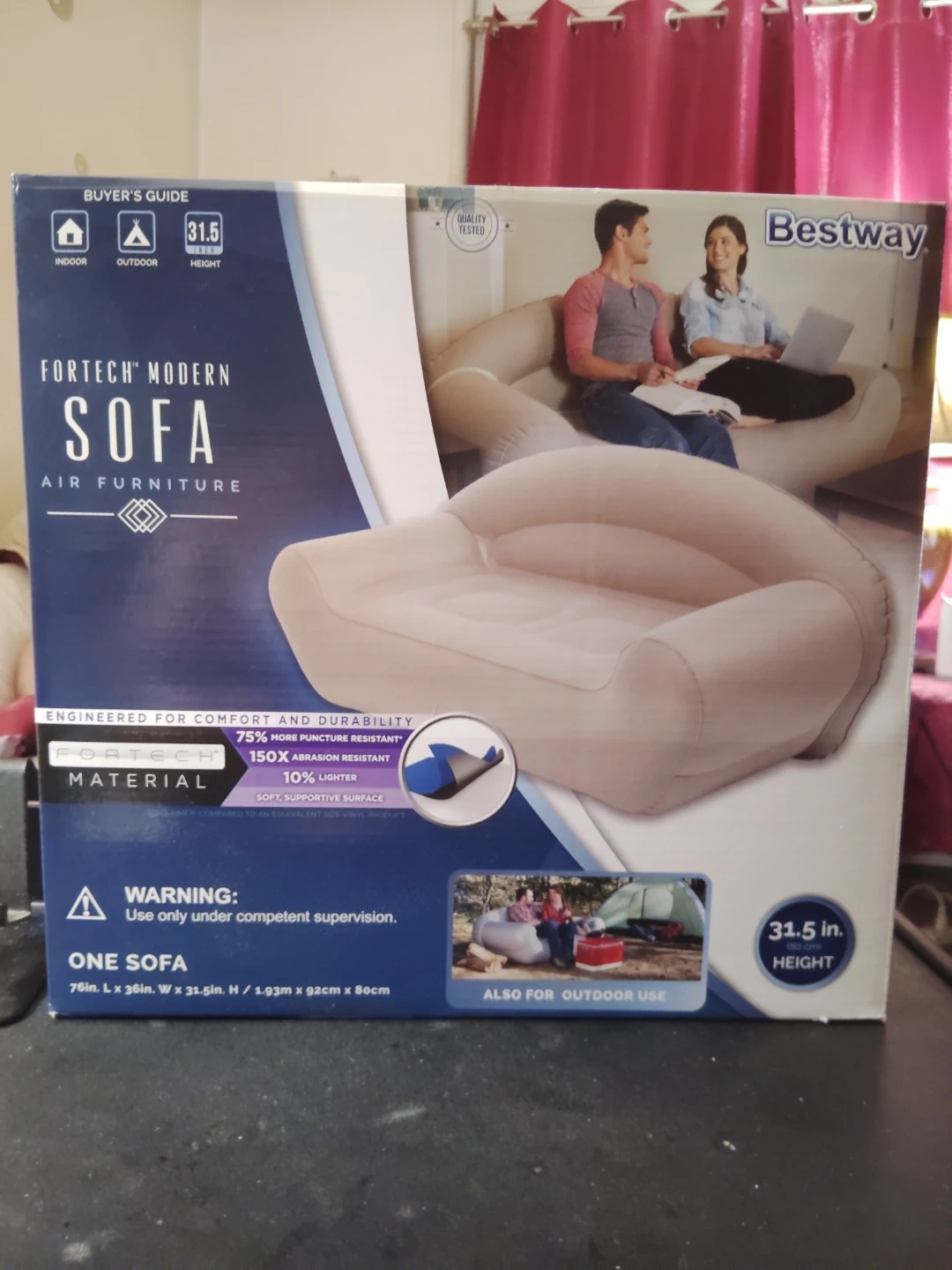 65All proceeds go towards an effort into building a Stray Canine Sanctuary and Shelter in Puerto Rico. Selling a brand new Bestway Fortech Modern Sofa Air Furniture! It's engineered for comfort and durability with Fortech material. It is 75% more puncture resistant and 150x abrasion resistant. It also has a 10% lighter soft supportive surface. The height is 31.5 inches. Perfect for indoor and outdoor use!