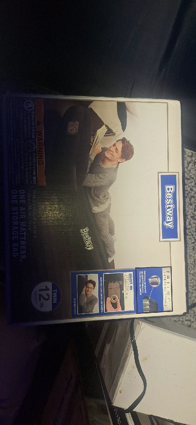 25Selling a Bestway twin air mattress with a 12-inch height. It comes with one air mattress and a storage bag. It also features a built-in pump for automatic inflation and deflation. The mattress is engineered for firmness and designed for durability, constructed for comfort