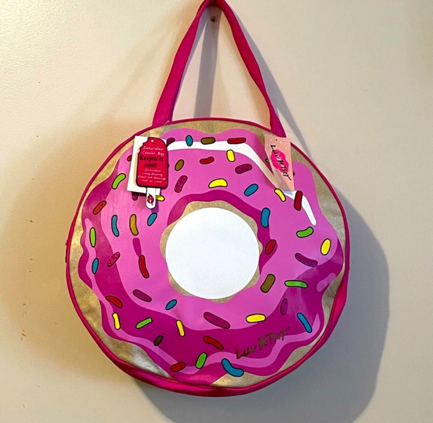 65Super cute Betsey Johnson donut crossbody bag! It's a fun and unique accessory to add to your collection. The bag features a playful donut design with colorful sprinkles and a vibrant pink trim. Perfect for adding a touch of whimsy to any outfit