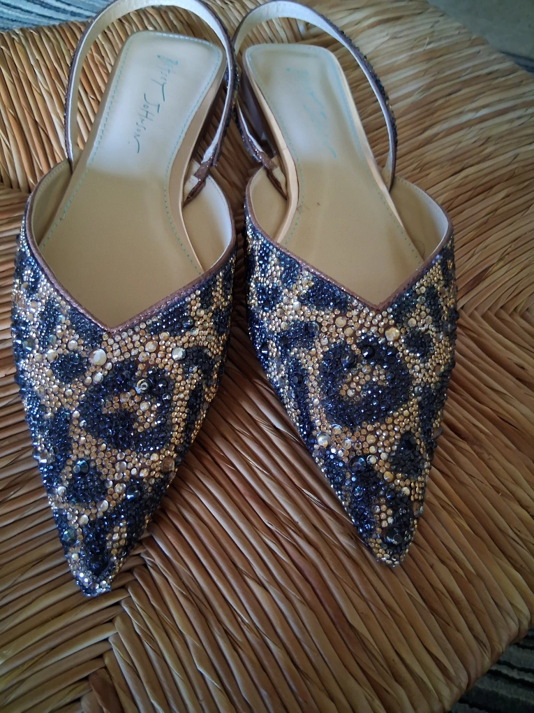 These Betsey Johnson slingback heels are super cute! They have a fun, sparkly design that's sure to catch the eye. Perfect for adding a touch of glam to any outfit