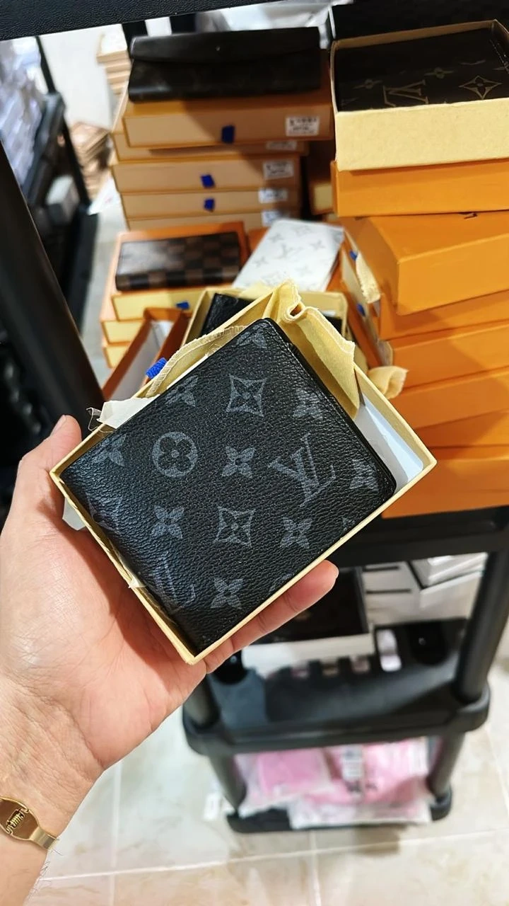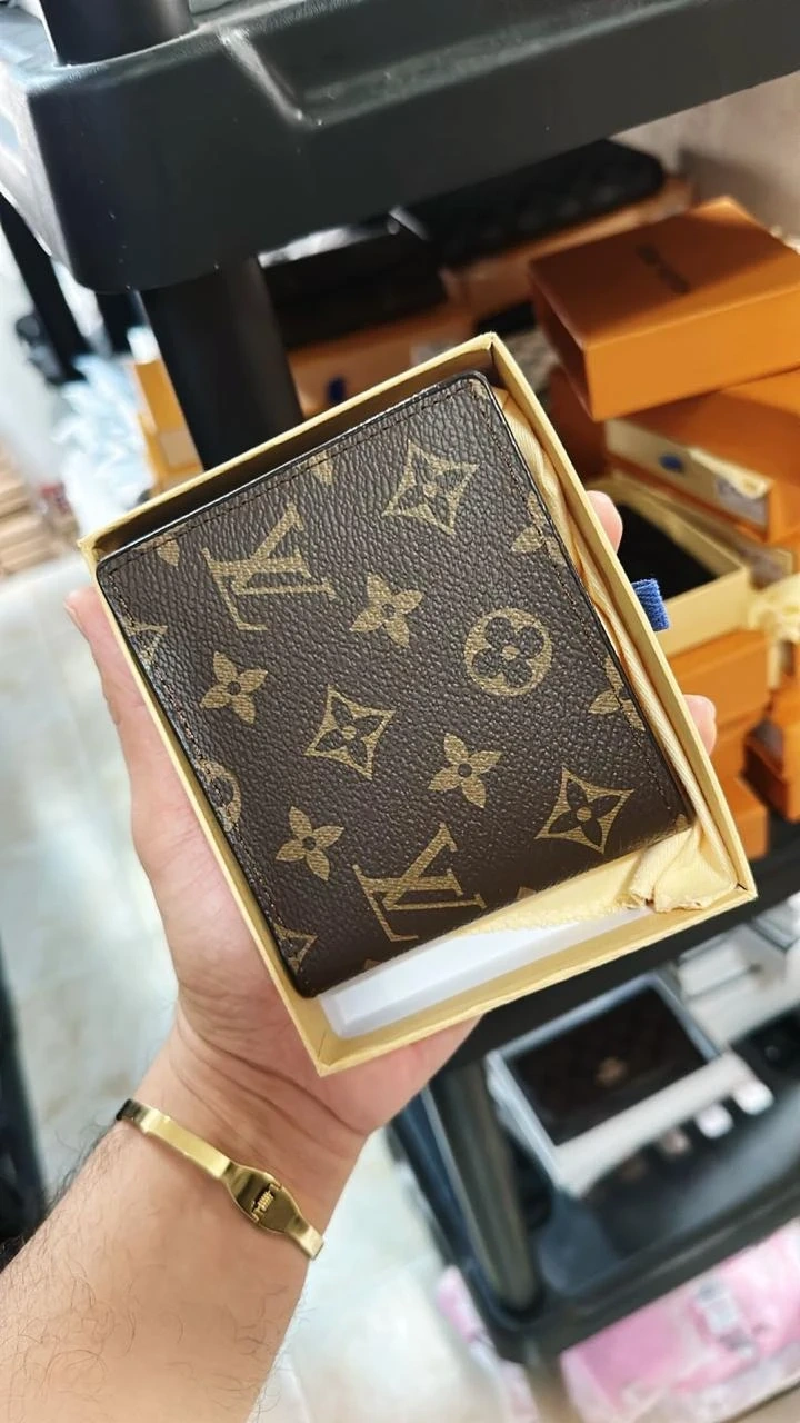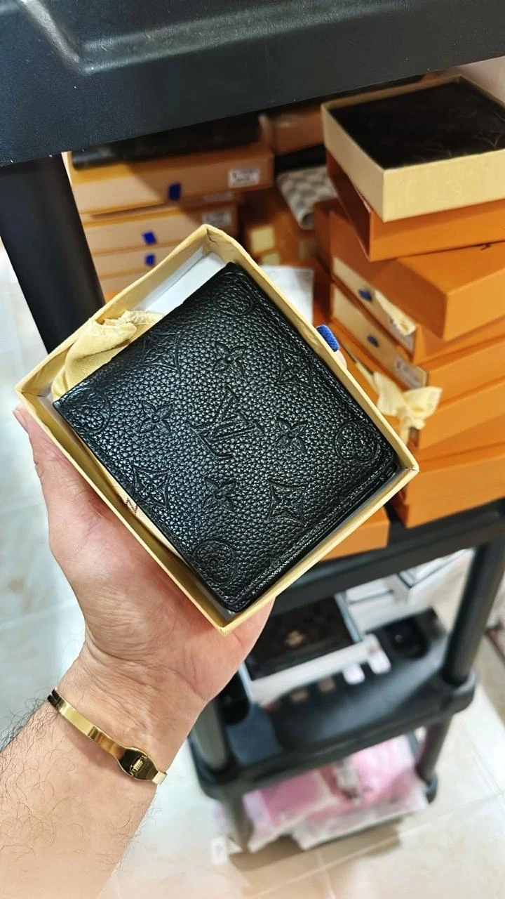 This is a Louis Vuitton bi-fold wallet. It's available in black with embossed monogram or classic brown monogram. Includes original box.