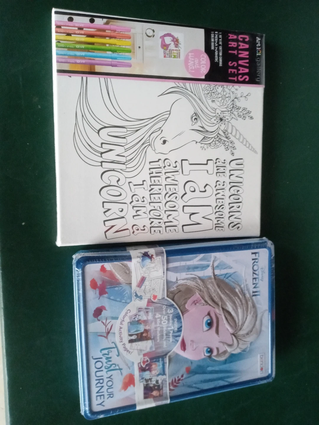 Both brand new, never opened, $5.00 each...will make great gifts...Unicorn canvas art set includes canvas, pencils, and markers. Frozen II tin set comes with colorful activity pages and stickers. Fun art supplies for creative kids! Both from an animal and smoke free home. Cash only. Purchase and pickup in North Riverside.