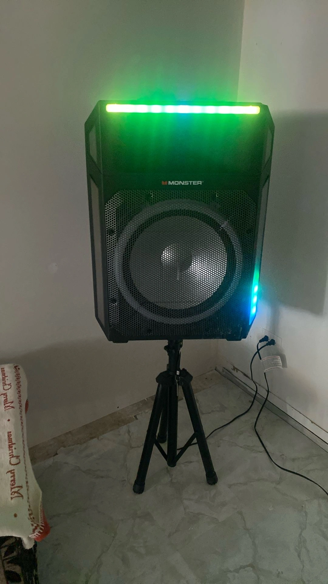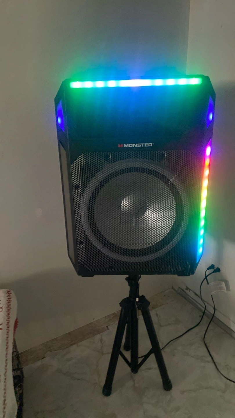 Works great, except the lights on the left side. Comes with tripod, karaoke microphone, and manual. Great for your next backyard party! Make an offer!