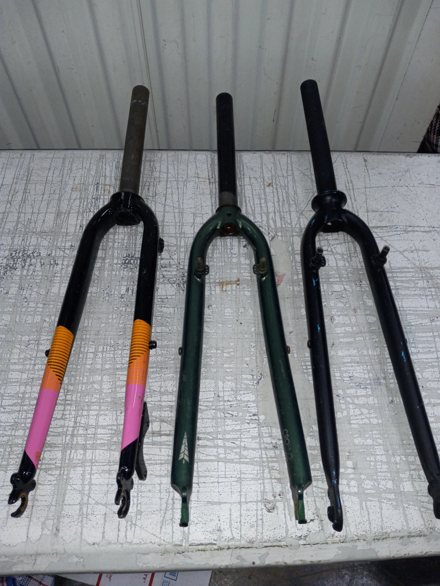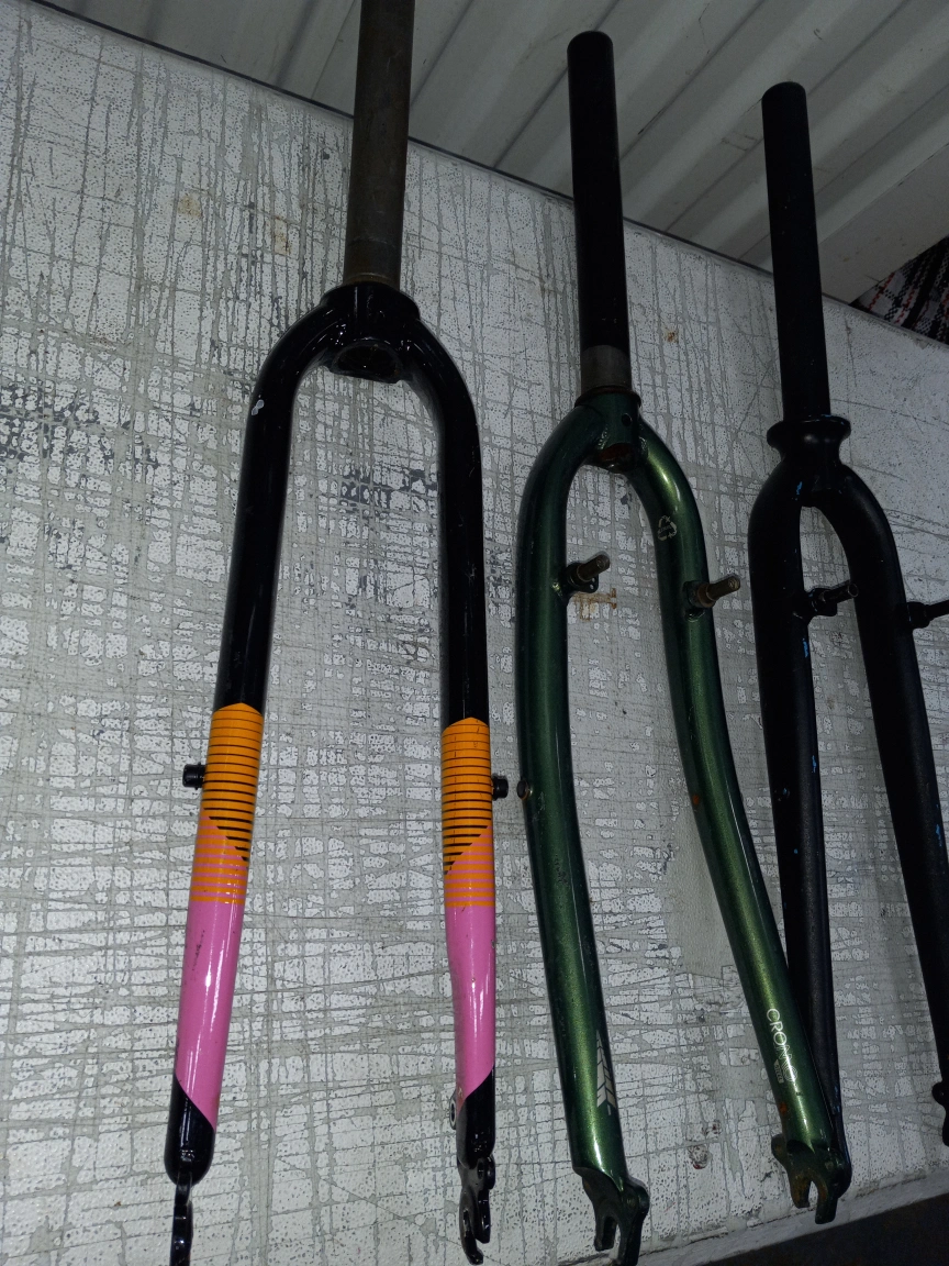 Selling these bike forks. They come in various colors including black, green, and pink. Feel free to message me if you're interested!