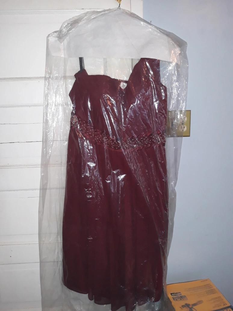 Selling a beautiful Bill Levkoff dress in a lovely burgundy color. It's a size 18 and made of 100% polyester for both the shell and lining. The dress has a stylish one-shoulder design and a beaded waist detail. Perfect for a special occasion!