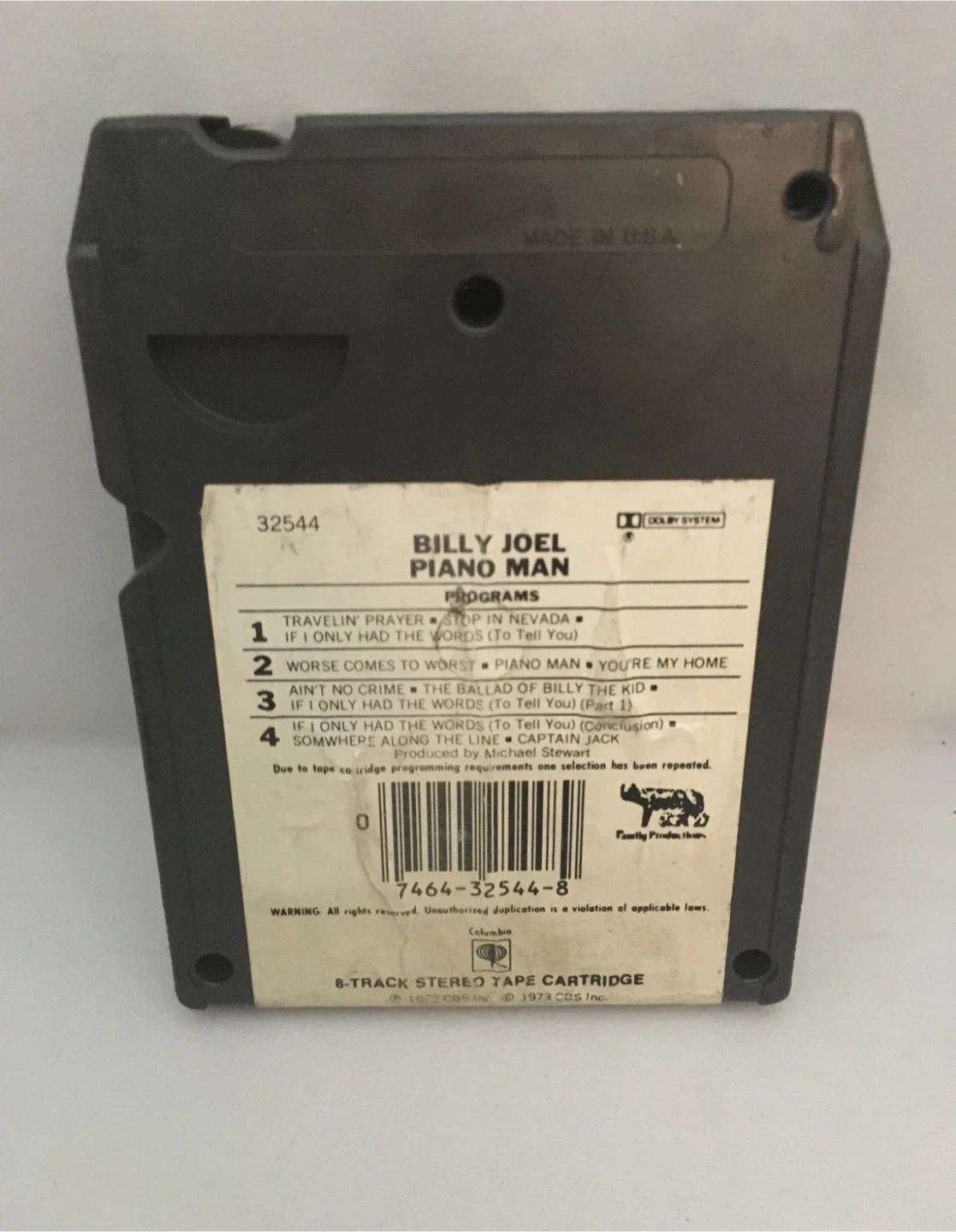 This is a used Billy Joel Piano Man 8-Track. As it is seen the label is worn and has not been used NOR tested before listing. It has been in storage though so it's not been open to outside weather either. Please ask questions before buying, no returns.