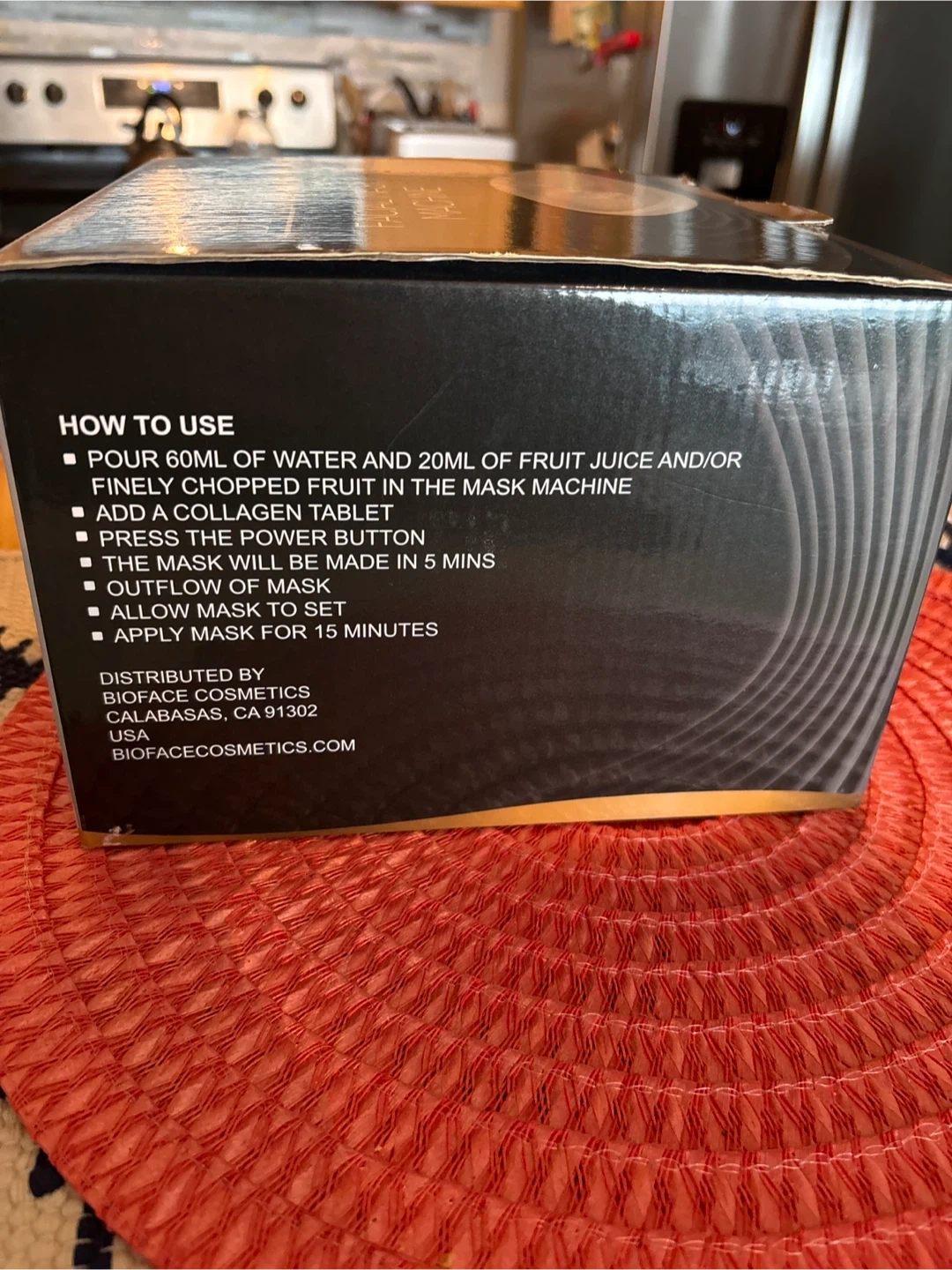 I'm selling a BIOFACE Facial Mask Machine. It's in great condition and comes with the original box. It uses 110V-240V 50-60Hz power, consumes 90W, and has a control temperature of 75±10 °C. It's easy to use, just pour 60ml of water and 20ml of fruit juice and/or finely chopped fruit in the mask machine, add a collagen tablet, and press the power button. The mask will be made in 5 minutes, allow the mask to set, and apply the mask for 15 minutes